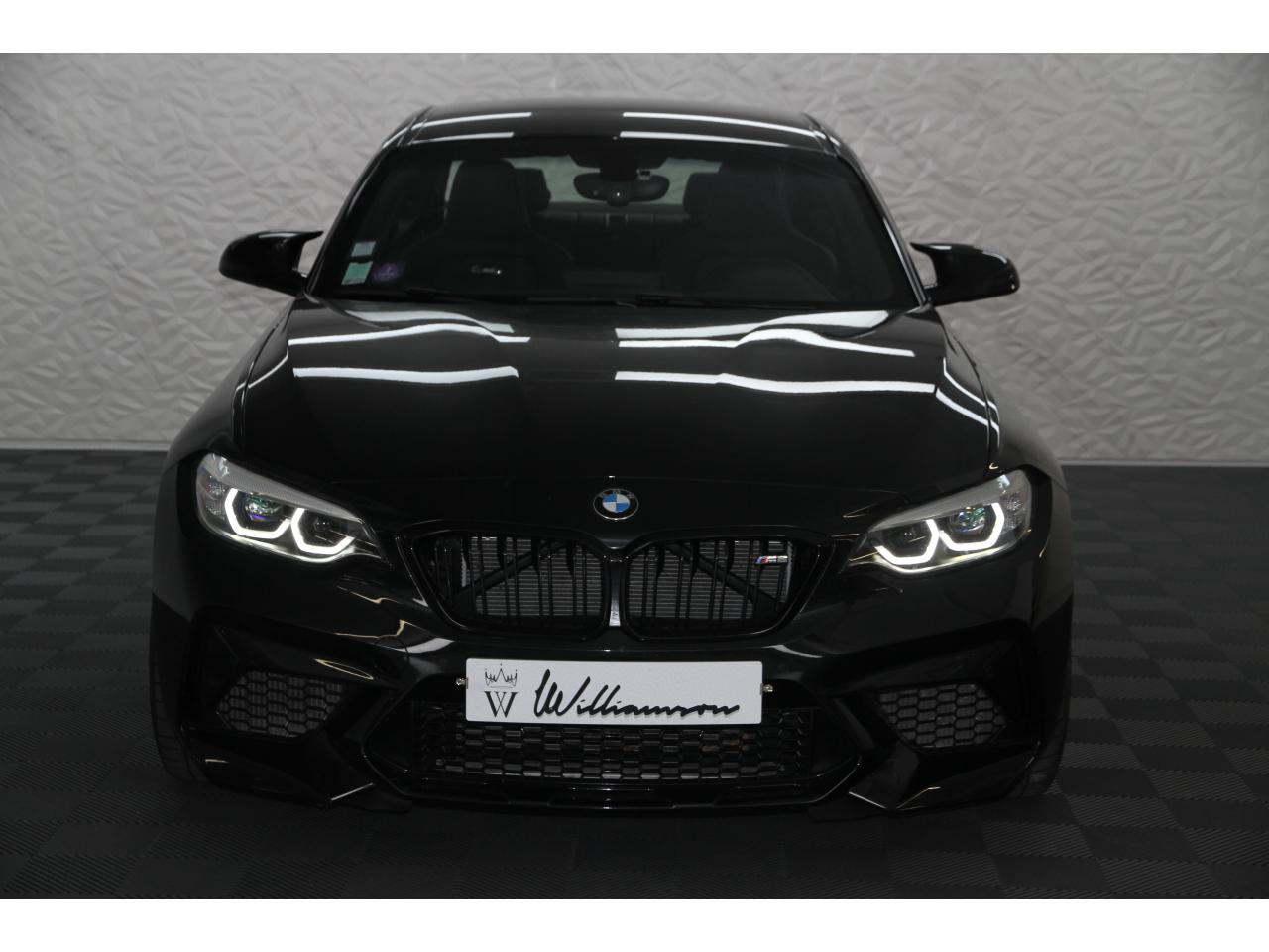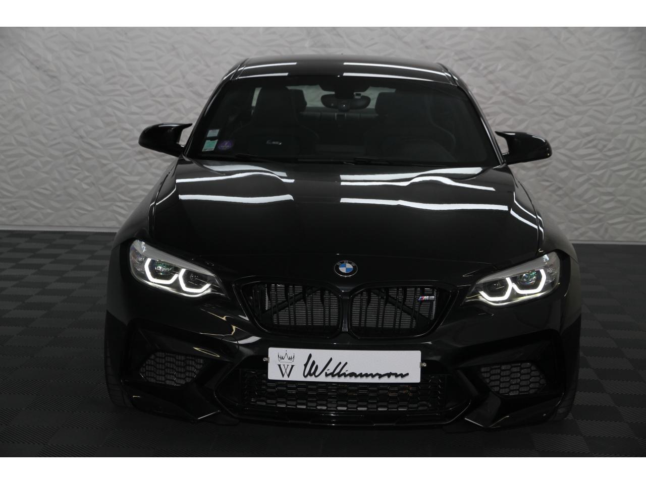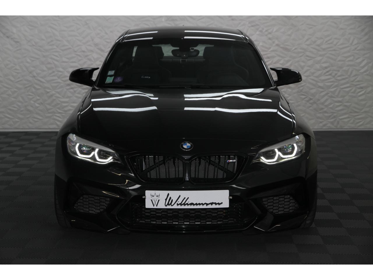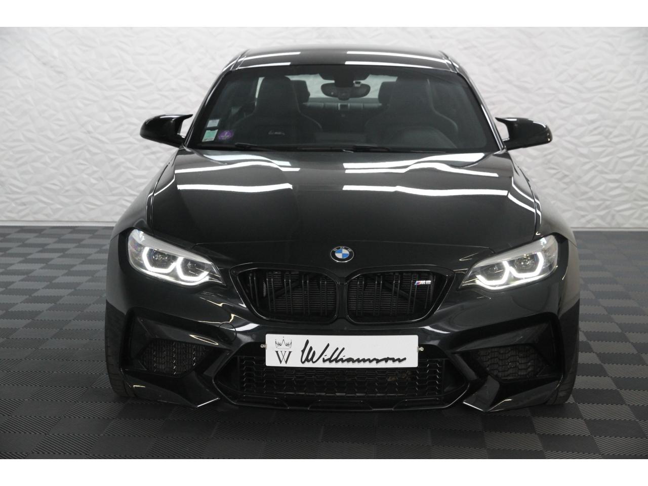 2 doubles sorties d'échappement rondes en chrome noir, à gauche et à droiteABS, y compris assistant de freinageAirbags frontaux conducteur et passagerAirbags latéraux avantAlarme antivolAntenne de toit « aileron de requin »Anti-démarrage électronique EWS IVAppel d'Urgence Intelligent (durée de vie de la voiture)Banquette arrière rabattable 40/20/40Barre de renfort en carbone dans le compartiment moteurBMW Tracking SystemBoîte de vitesses manuelle 6 rapportsBouton de démarrage Start/Stop rouge avec contour chroméCalandre avec cadre en noir brillant et doubles barreaux verticaux noirs et logo "M2"Ceintures de sécurité noires avec liseré aux couleurs MClés radiocommandées à mémorisation automatique des réglages « Personal Profile », personnalisation des principales commandesClimatisation automatique 3 zonesContrôle Dynamique de la Stabilité DSC+ avec fonctionnalités étendues et M Dynamique Mode pour une conduite dynamiqueContrôle Dynamique de Traction DTCCoques de rétroviseurs extérieurs couleur carrosserieDémarrage sans clé via le bouton Start/StopDésignation du modèleDétecteur de pluie et allumage automatique des projecteursDéverrouillage électrique du coffre via le volet de coffre ou la clé radiocommandéeDifférentiel Actif M à commande électronique avec blocage du couple variant de 0 à 100%Direction à assistance électriqueDirection Servotronic spécifique M à assistance variable en fonction de la vitesseEclairage dans le coffreEcrous de roues antivolFeux de route anti-éblouissementFixations ISOFIX aux places arrièreFonction d'arrêt et de redémarrage automatique du moteurFonctions "Ma BMW à distance"Gestionnaire M Drive : commande la réactivité de l'accélérateur, de la direction M Servotronic, de la boîte M DKGIndicateur de changement de rapportInscription « M2 Competition » sur le coffreInterface Bluetooth et port USBJantes en alliage léger 19" (48 cm) style 788 M, forgées, style en Y, bicolores « Schwarz » brillant avec monte pneumatique mixteKit de mobilité BMWMesure individuelle de pression des pneumatiques avec 3 niveaux d'alerteMotorisation BMW M TwinPower TurboNavigation multimédia ProfessionalOrdinateur de bord, Check-Control et indicateur de température extérieurePack Advanced Full LEDPorte-gobelets sur la console centralePrise audio USBRadars de stationnement avant et arrière PDCRégulateur de vitesse avec fonction freinageRepose-pied conducteur siglé "M"Rétroviseur intérieur électrochromeRétroviseurs extérieurs couleur carrosserie à réglage électrique et dégivrants, miroir asphérique côté conducteur et passager, rappels de clignotants intégrésRétroviseurs extérieurs spécifiques M dans la couleur de la carrosserie, aérodynamiquement optimisésSellerie cuir DakotaServices Après-Vente connectés BMW TeleServicesSeuils de portes avec inscription "M2 Competition"Shadow Line brillant BMW IndividualShadow Line Brillant BMW Individual étenduSièges avant chauffantsSièges conducteur et passager réglables en hauteurSystème de freinage spécifique avec disques de freins perforés et ventilésSystème de récupération de l'énergie au freinageTapis de sol en veloursTouches multifonctions sur le volantTrain roulant de conception M avec liaison essieu/carrosserie raffermie et bras transversaux,ressort et amortisseurs spécifiques MTriangle de présignalisation avec kit de premiers secoursVerrouillage automatique des portes dès 15km/hVerrouillage centralisé des portes, du coffre et de la trappe à essenceVolant M gainé cuir avec touches multifonctions, deux touches M Drive