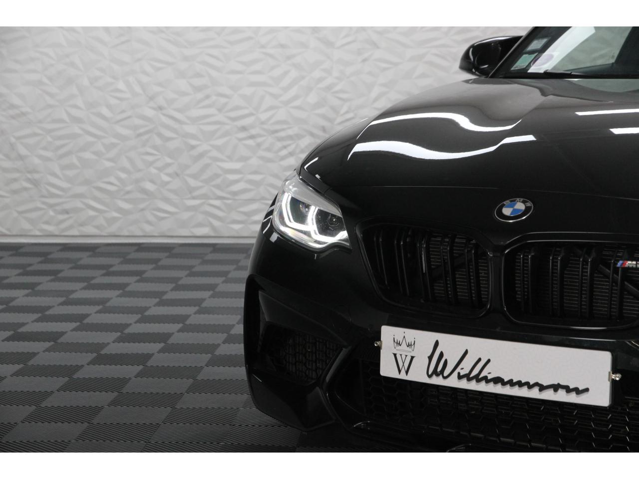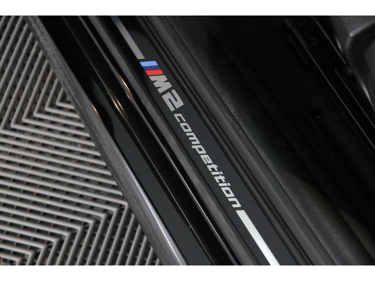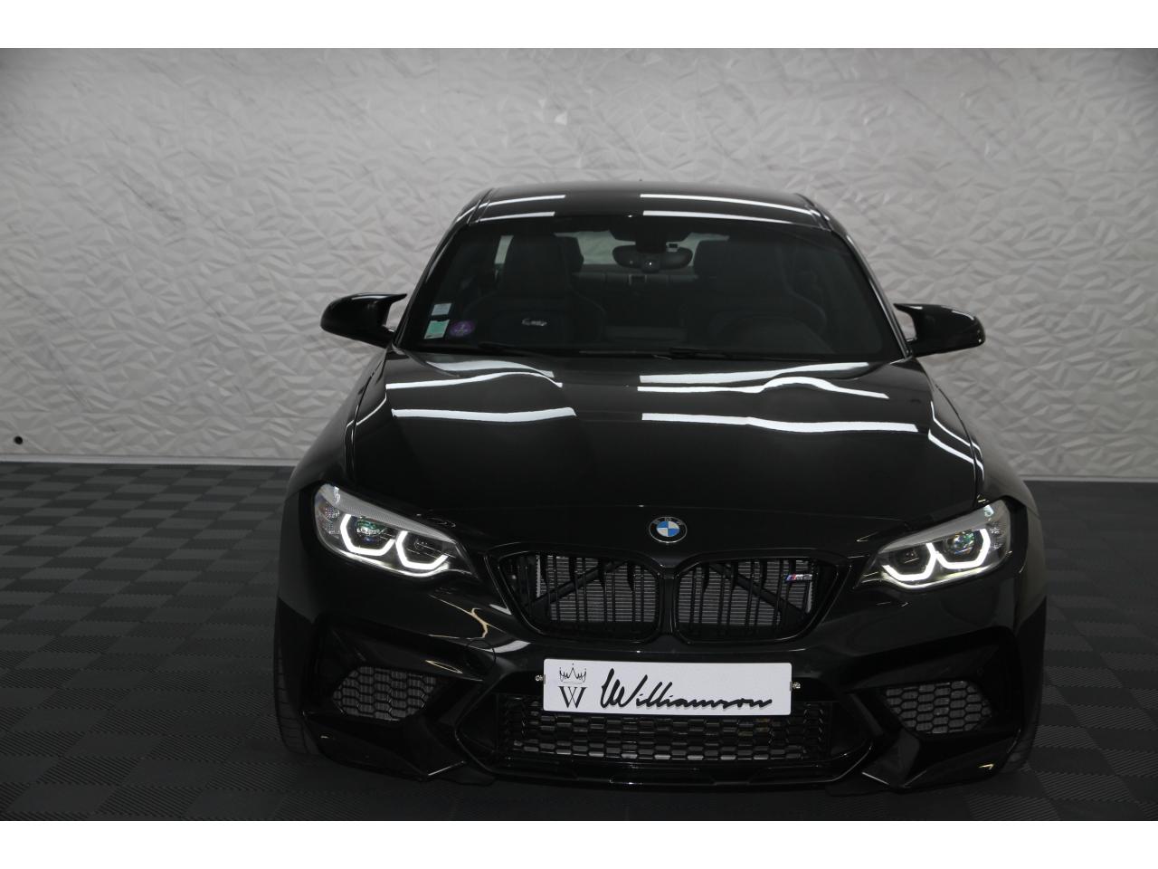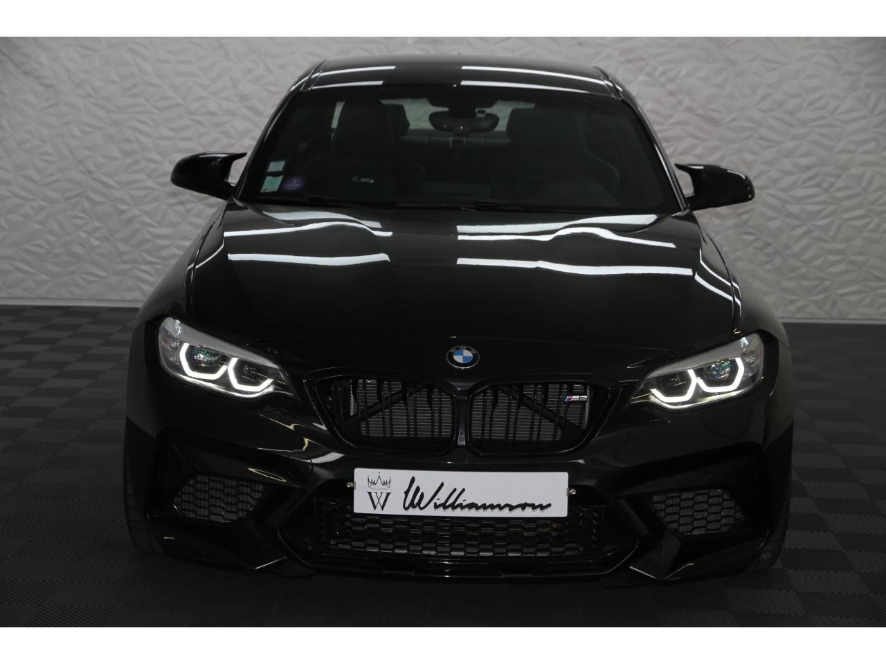 2 doubles sorties d'échappement rondes en chrome noir, à gauche et à droiteABS, y compris assistant de freinageAirbags frontaux conducteur et passagerAirbags latéraux avantAlarme antivolAntenne de toit « aileron de requin »Anti-démarrage électronique EWS IVAppel d'Urgence Intelligent (durée de vie de la voiture)Banquette arrière rabattable 40/20/40Barre de renfort en carbone dans le compartiment moteurBMW Tracking SystemBoîte de vitesses manuelle 6 rapportsBouton de démarrage Start/Stop rouge avec contour chroméCalandre avec cadre en noir brillant et doubles barreaux verticaux noirs et logo "M2"Ceintures de sécurité noires avec liseré aux couleurs MClés radiocommandées à mémorisation automatique des réglages « Personal Profile », personnalisation des principales commandesClimatisation automatique 3 zonesContrôle Dynamique de la Stabilité DSC+ avec fonctionnalités étendues et M Dynamique Mode pour une conduite dynamiqueContrôle Dynamique de Traction DTCCoques de rétroviseurs extérieurs couleur carrosserieDémarrage sans clé via le bouton Start/StopDésignation du modèleDétecteur de pluie et allumage automatique des projecteursDéverrouillage électrique du coffre via le volet de coffre ou la clé radiocommandéeDifférentiel Actif M à commande électronique avec blocage du couple variant de 0 à 100%Direction à assistance électriqueDirection Servotronic spécifique M à assistance variable en fonction de la vitesseEclairage dans le coffreEcrous de roues antivolFeux de route anti-éblouissementFixations ISOFIX aux places arrièreFonction d'arrêt et de redémarrage automatique du moteurFonctions "Ma BMW à distance"Gestionnaire M Drive : commande la réactivité de l'accélérateur, de la direction M Servotronic, de la boîte M DKGIndicateur de changement de rapportInscription « M2 Competition » sur le coffreInterface Bluetooth et port USBJantes en alliage léger 19" (48 cm) style 788 M, forgées, style en Y, bicolores « Schwarz » brillant avec monte pneumatique mixteKit de mobilité BMWMesure individuelle de pression des pneumatiques avec 3 niveaux d'alerteMotorisation BMW M TwinPower TurboNavigation multimédia ProfessionalOrdinateur de bord, Check-Control et indicateur de température extérieurePack Advanced Full LEDPorte-gobelets sur la console centralePrise audio USBRadars de stationnement avant et arrière PDCRégulateur de vitesse avec fonction freinageRepose-pied conducteur siglé "M"Rétroviseur intérieur électrochromeRétroviseurs extérieurs couleur carrosserie à réglage électrique et dégivrants, miroir asphérique côté conducteur et passager, rappels de clignotants intégrésRétroviseurs extérieurs spécifiques M dans la couleur de la carrosserie, aérodynamiquement optimisésSellerie cuir DakotaServices Après-Vente connectés BMW TeleServicesSeuils de portes avec inscription "M2 Competition"Shadow Line brillant BMW IndividualShadow Line Brillant BMW Individual étenduSièges avant chauffantsSièges conducteur et passager réglables en hauteurSystème de freinage spécifique avec disques de freins perforés et ventilésSystème de récupération de l'énergie au freinageTapis de sol en veloursTouches multifonctions sur le volantTrain roulant de conception M avec liaison essieu/carrosserie raffermie et bras transversaux,ressort et amortisseurs spécifiques MTriangle de présignalisation avec kit de premiers secoursVerrouillage automatique des portes dès 15km/hVerrouillage centralisé des portes, du coffre et de la trappe à essenceVolant M gainé cuir avec touches multifonctions, deux touches M Drive