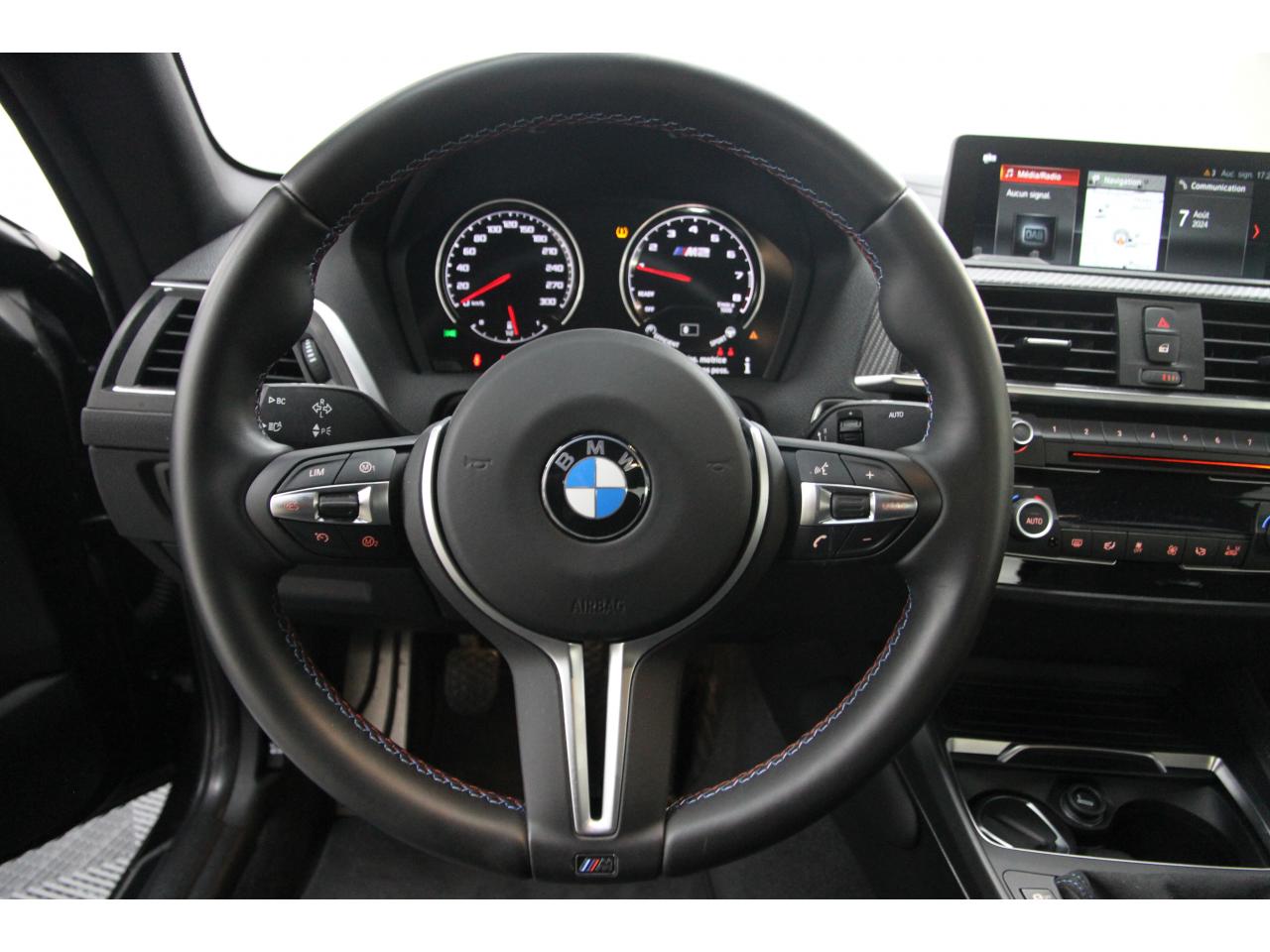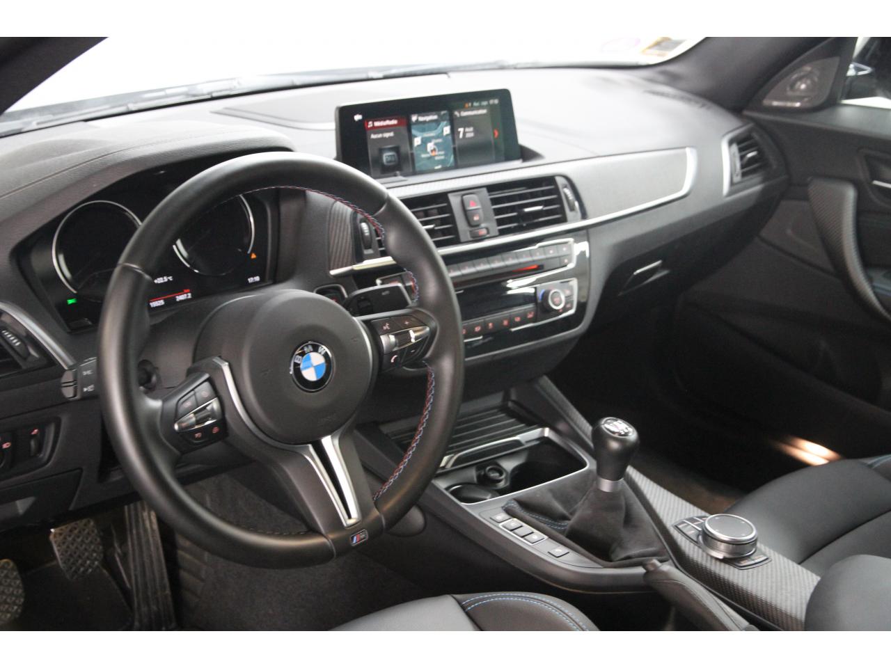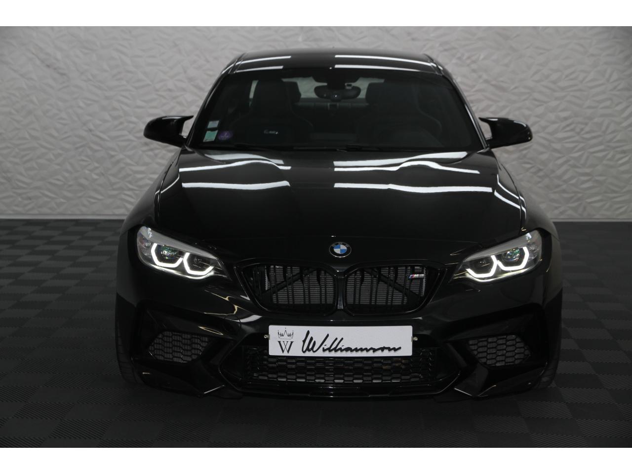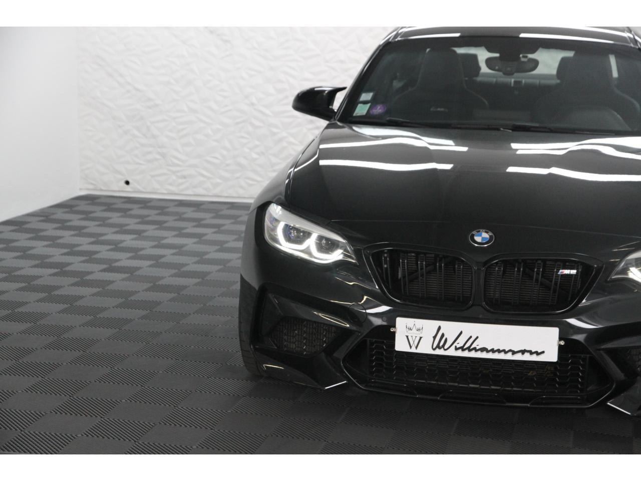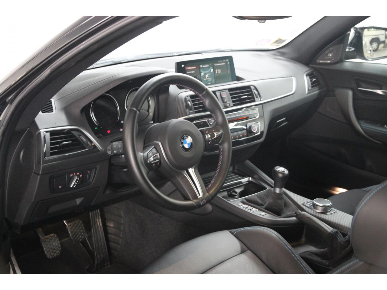 2 doubles sorties d'échappement rondes en chrome noir, à gauche et à droiteABS, y compris assistant de freinageAirbags frontaux conducteur et passagerAirbags latéraux avantAlarme antivolAntenne de toit « aileron de requin »Anti-démarrage électronique EWS IVAppel d'Urgence Intelligent (durée de vie de la voiture)Banquette arrière rabattable 40/20/40Barre de renfort en carbone dans le compartiment moteurBMW Tracking SystemBoîte de vitesses manuelle 6 rapportsBouton de démarrage Start/Stop rouge avec contour chroméCalandre avec cadre en noir brillant et doubles barreaux verticaux noirs et logo "M2"Ceintures de sécurité noires avec liseré aux couleurs MClés radiocommandées à mémorisation automatique des réglages « Personal Profile », personnalisation des principales commandesClimatisation automatique 3 zonesContrôle Dynamique de la Stabilité DSC+ avec fonctionnalités étendues et M Dynamique Mode pour une conduite dynamiqueContrôle Dynamique de Traction DTCCoques de rétroviseurs extérieurs couleur carrosserieDémarrage sans clé via le bouton Start/StopDésignation du modèleDétecteur de pluie et allumage automatique des projecteursDéverrouillage électrique du coffre via le volet de coffre ou la clé radiocommandéeDifférentiel Actif M à commande électronique avec blocage du couple variant de 0 à 100%Direction à assistance électriqueDirection Servotronic spécifique M à assistance variable en fonction de la vitesseEclairage dans le coffreEcrous de roues antivolFeux de route anti-éblouissementFixations ISOFIX aux places arrièreFonction d'arrêt et de redémarrage automatique du moteurFonctions "Ma BMW à distance"Gestionnaire M Drive : commande la réactivité de l'accélérateur, de la direction M Servotronic, de la boîte M DKGIndicateur de changement de rapportInscription « M2 Competition » sur le coffreInterface Bluetooth et port USBJantes en alliage léger 19" (48 cm) style 788 M, forgées, style en Y, bicolores « Schwarz » brillant avec monte pneumatique mixteKit de mobilité BMWMesure individuelle de pression des pneumatiques avec 3 niveaux d'alerteMotorisation BMW M TwinPower TurboNavigation multimédia ProfessionalOrdinateur de bord, Check-Control et indicateur de température extérieurePack Advanced Full LEDPorte-gobelets sur la console centralePrise audio USBRadars de stationnement avant et arrière PDCRégulateur de vitesse avec fonction freinageRepose-pied conducteur siglé "M"Rétroviseur intérieur électrochromeRétroviseurs extérieurs couleur carrosserie à réglage électrique et dégivrants, miroir asphérique côté conducteur et passager, rappels de clignotants intégrésRétroviseurs extérieurs spécifiques M dans la couleur de la carrosserie, aérodynamiquement optimisésSellerie cuir DakotaServices Après-Vente connectés BMW TeleServicesSeuils de portes avec inscription "M2 Competition"Shadow Line brillant BMW IndividualShadow Line Brillant BMW Individual étenduSièges avant chauffantsSièges conducteur et passager réglables en hauteurSystème de freinage spécifique avec disques de freins perforés et ventilésSystème de récupération de l'énergie au freinageTapis de sol en veloursTouches multifonctions sur le volantTrain roulant de conception M avec liaison essieu/carrosserie raffermie et bras transversaux,ressort et amortisseurs spécifiques MTriangle de présignalisation avec kit de premiers secoursVerrouillage automatique des portes dès 15km/hVerrouillage centralisé des portes, du coffre et de la trappe à essenceVolant M gainé cuir avec touches multifonctions, deux touches M Drive