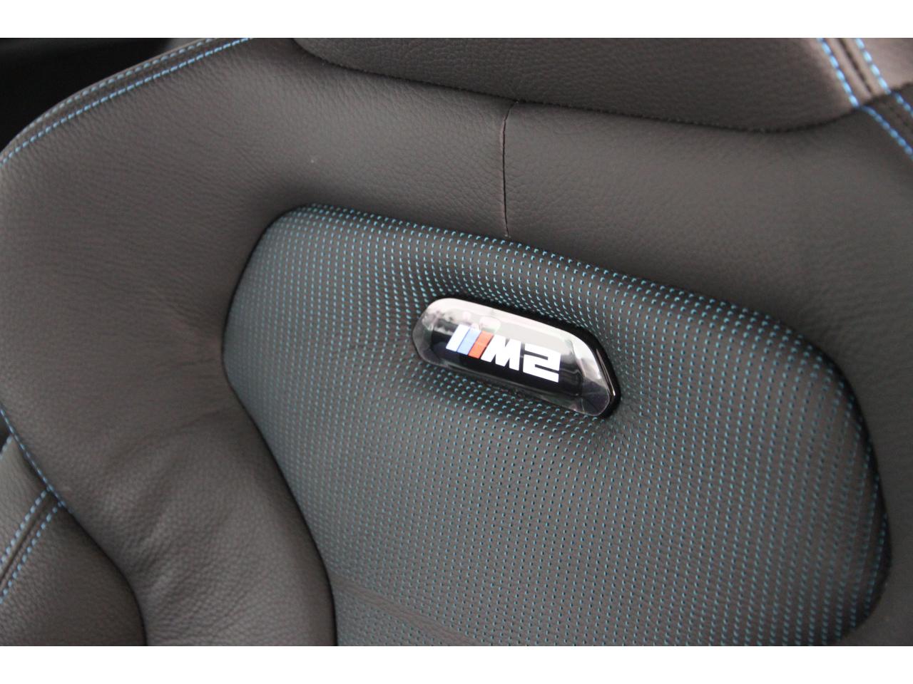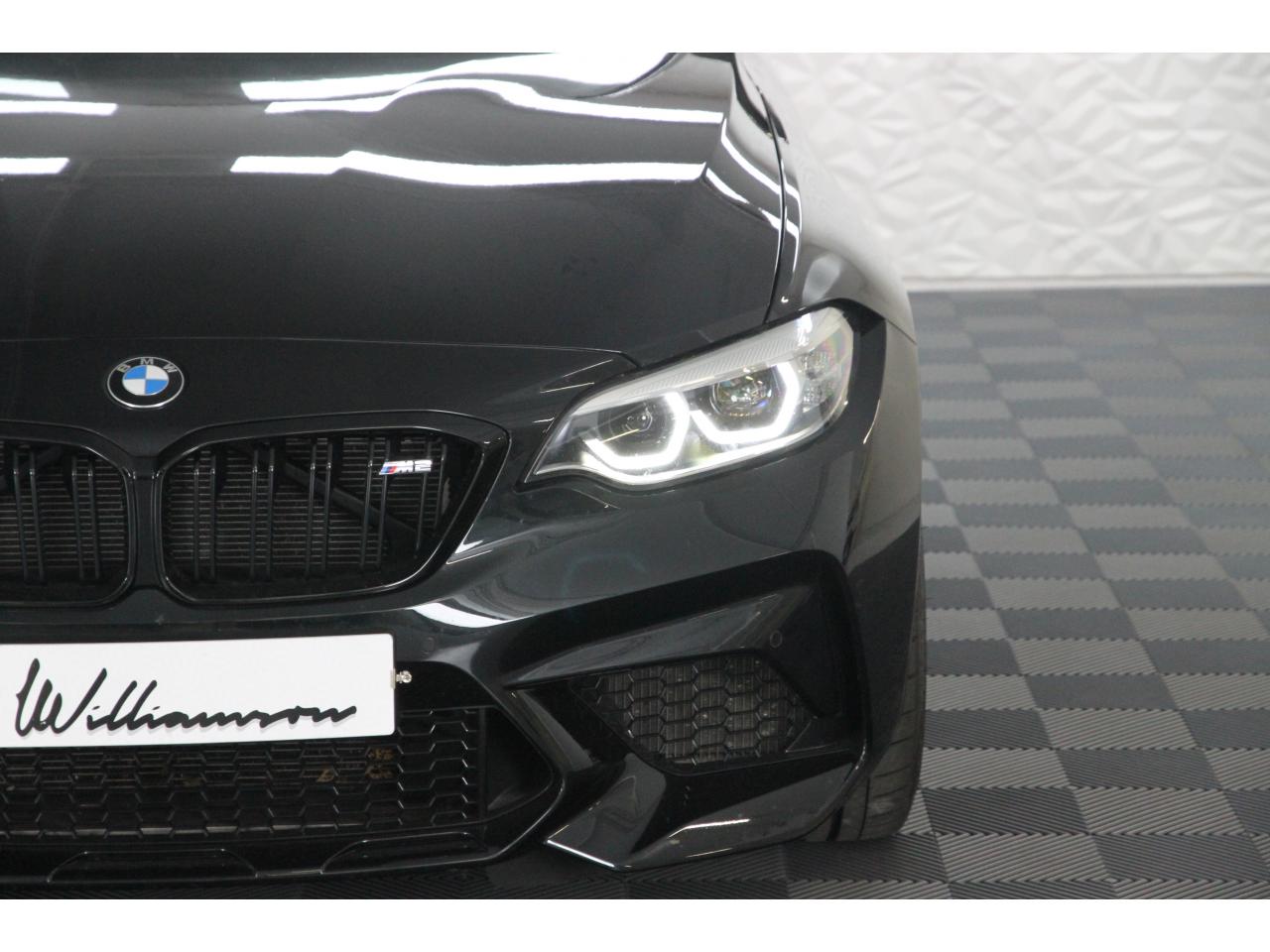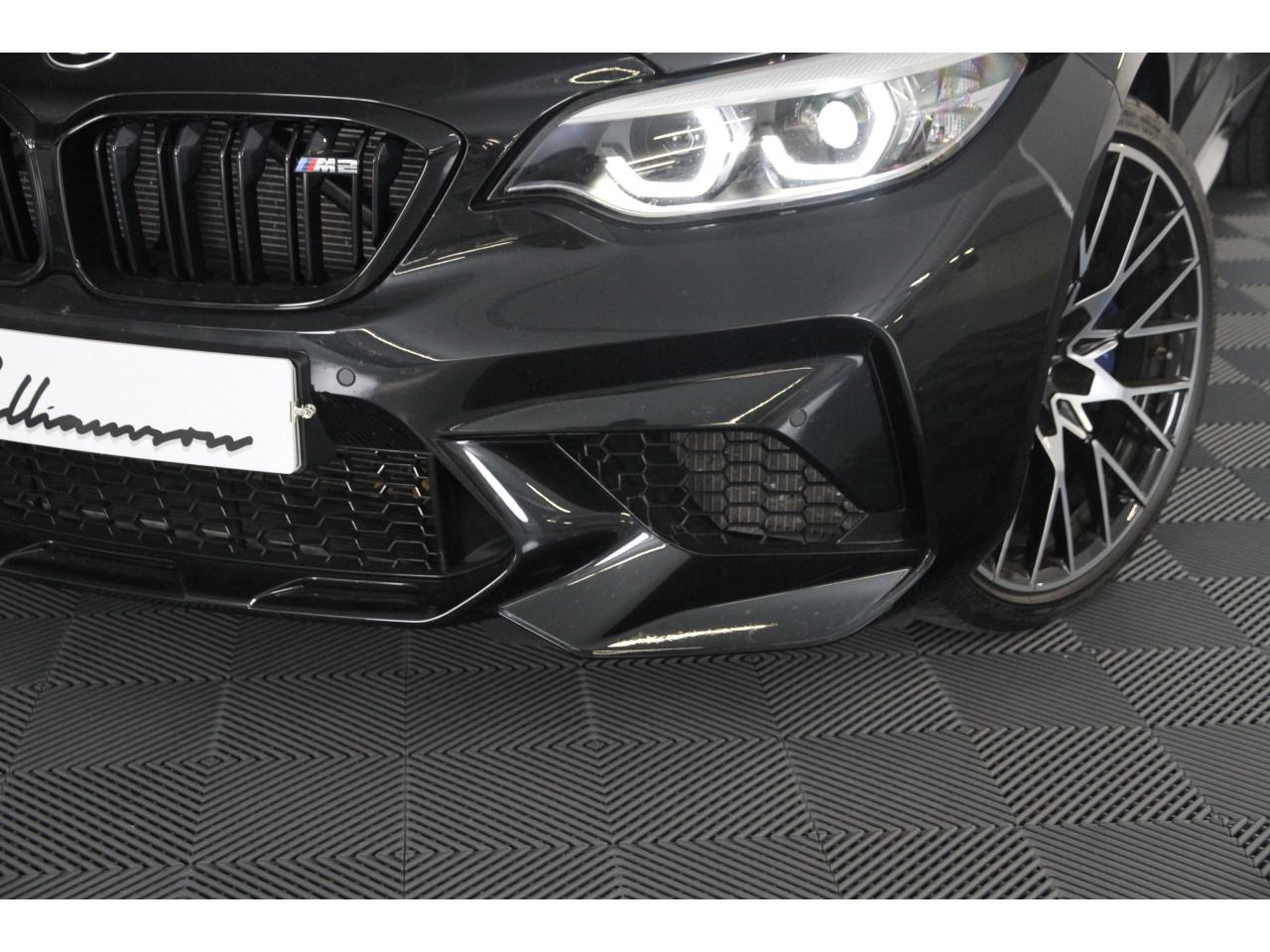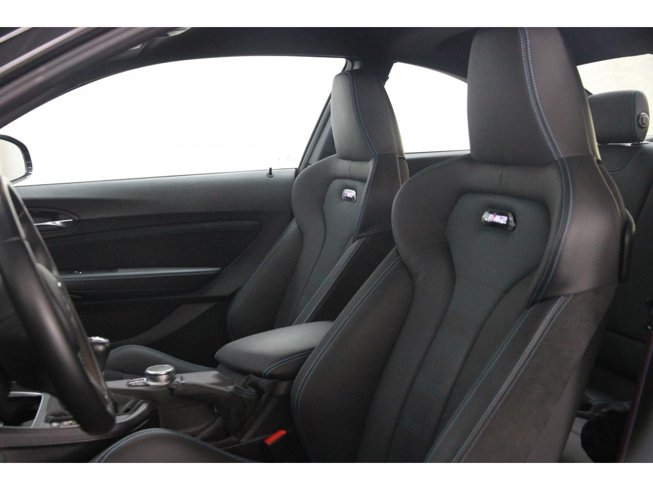 2 doubles sorties d'échappement rondes en chrome noir, à gauche et à droiteABS, y compris assistant de freinageAirbags frontaux conducteur et passagerAirbags latéraux avantAlarme antivolAntenne de toit « aileron de requin »Anti-démarrage électronique EWS IVAppel d'Urgence Intelligent (durée de vie de la voiture)Banquette arrière rabattable 40/20/40Barre de renfort en carbone dans le compartiment moteurBMW Tracking SystemBoîte de vitesses manuelle 6 rapportsBouton de démarrage Start/Stop rouge avec contour chroméCalandre avec cadre en noir brillant et doubles barreaux verticaux noirs et logo "M2"Ceintures de sécurité noires avec liseré aux couleurs MClés radiocommandées à mémorisation automatique des réglages « Personal Profile », personnalisation des principales commandesClimatisation automatique 3 zonesContrôle Dynamique de la Stabilité DSC+ avec fonctionnalités étendues et M Dynamique Mode pour une conduite dynamiqueContrôle Dynamique de Traction DTCCoques de rétroviseurs extérieurs couleur carrosserieDémarrage sans clé via le bouton Start/StopDésignation du modèleDétecteur de pluie et allumage automatique des projecteursDéverrouillage électrique du coffre via le volet de coffre ou la clé radiocommandéeDifférentiel Actif M à commande électronique avec blocage du couple variant de 0 à 100%Direction à assistance électriqueDirection Servotronic spécifique M à assistance variable en fonction de la vitesseEclairage dans le coffreEcrous de roues antivolFeux de route anti-éblouissementFixations ISOFIX aux places arrièreFonction d'arrêt et de redémarrage automatique du moteurFonctions "Ma BMW à distance"Gestionnaire M Drive : commande la réactivité de l'accélérateur, de la direction M Servotronic, de la boîte M DKGIndicateur de changement de rapportInscription « M2 Competition » sur le coffreInterface Bluetooth et port USBJantes en alliage léger 19" (48 cm) style 788 M, forgées, style en Y, bicolores « Schwarz » brillant avec monte pneumatique mixteKit de mobilité BMWMesure individuelle de pression des pneumatiques avec 3 niveaux d'alerteMotorisation BMW M TwinPower TurboNavigation multimédia ProfessionalOrdinateur de bord, Check-Control et indicateur de température extérieurePack Advanced Full LEDPorte-gobelets sur la console centralePrise audio USBRadars de stationnement avant et arrière PDCRégulateur de vitesse avec fonction freinageRepose-pied conducteur siglé "M"Rétroviseur intérieur électrochromeRétroviseurs extérieurs couleur carrosserie à réglage électrique et dégivrants, miroir asphérique côté conducteur et passager, rappels de clignotants intégrésRétroviseurs extérieurs spécifiques M dans la couleur de la carrosserie, aérodynamiquement optimisésSellerie cuir DakotaServices Après-Vente connectés BMW TeleServicesSeuils de portes avec inscription "M2 Competition"Shadow Line brillant BMW IndividualShadow Line Brillant BMW Individual étenduSièges avant chauffantsSièges conducteur et passager réglables en hauteurSystème de freinage spécifique avec disques de freins perforés et ventilésSystème de récupération de l'énergie au freinageTapis de sol en veloursTouches multifonctions sur le volantTrain roulant de conception M avec liaison essieu/carrosserie raffermie et bras transversaux,ressort et amortisseurs spécifiques MTriangle de présignalisation avec kit de premiers secoursVerrouillage automatique des portes dès 15km/hVerrouillage centralisé des portes, du coffre et de la trappe à essenceVolant M gainé cuir avec touches multifonctions, deux touches M Drive
