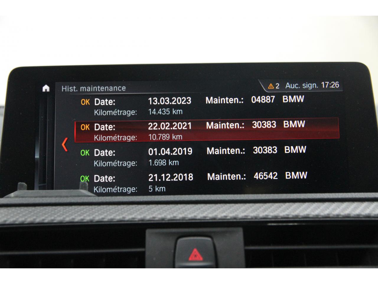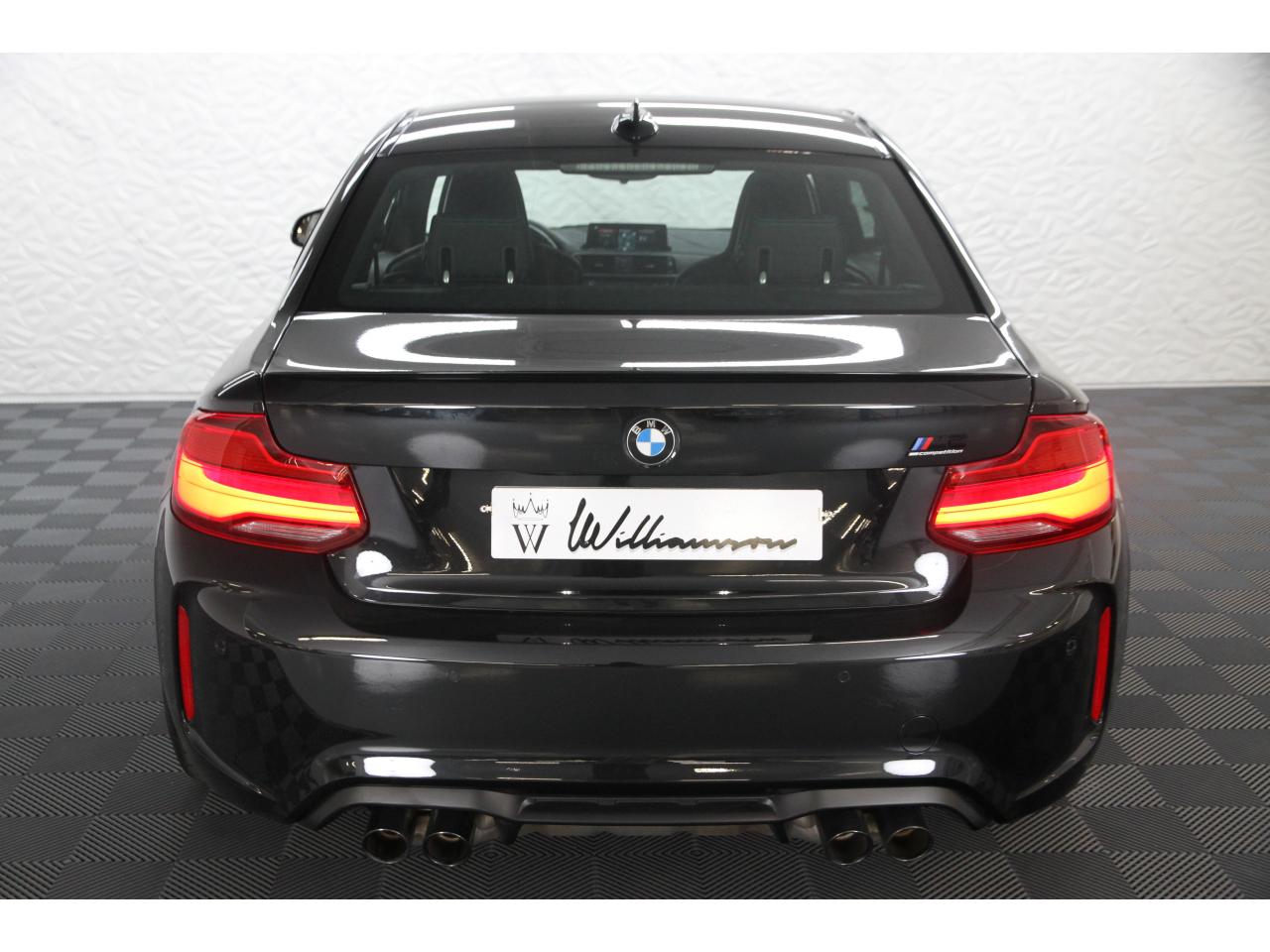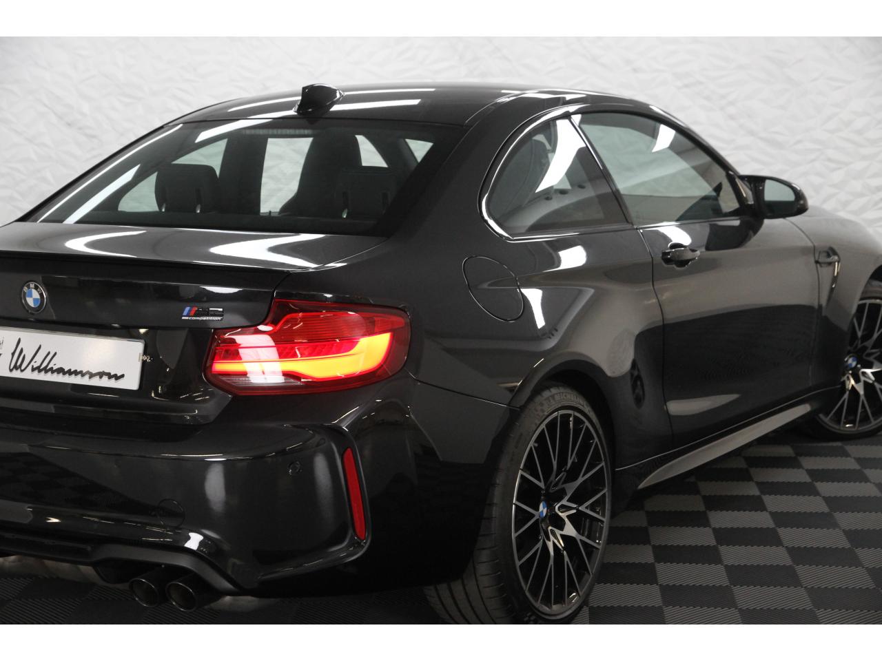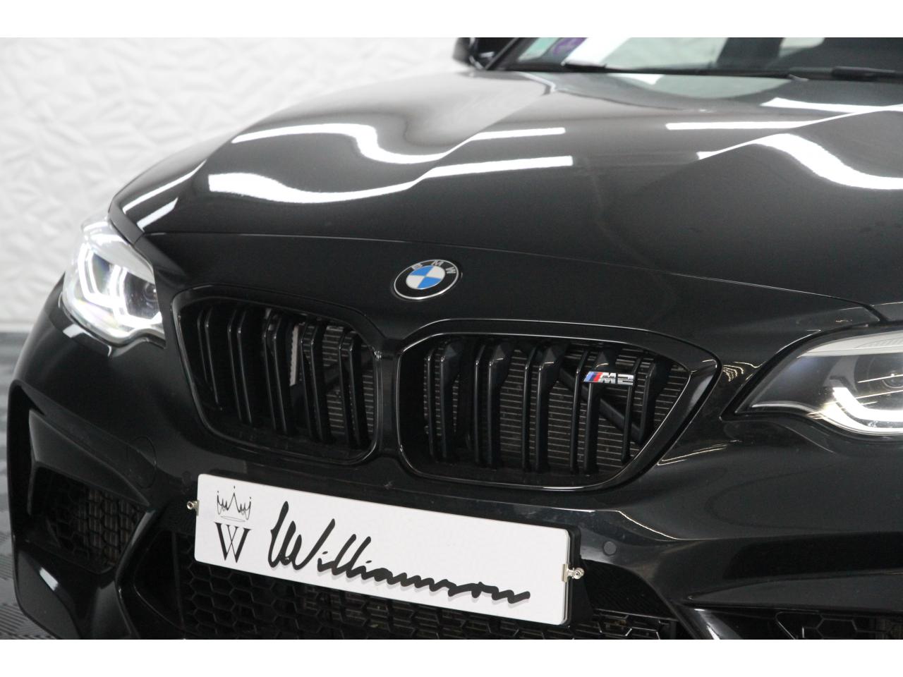 2 doubles sorties d'échappement rondes en chrome noir, à gauche et à droiteABS, y compris assistant de freinageAirbags frontaux conducteur et passagerAirbags latéraux avantAlarme antivolAntenne de toit « aileron de requin »Anti-démarrage électronique EWS IVAppel d'Urgence Intelligent (durée de vie de la voiture)Banquette arrière rabattable 40/20/40Barre de renfort en carbone dans le compartiment moteurBMW Tracking SystemBoîte de vitesses manuelle 6 rapportsBouton de démarrage Start/Stop rouge avec contour chroméCalandre avec cadre en noir brillant et doubles barreaux verticaux noirs et logo "M2"Ceintures de sécurité noires avec liseré aux couleurs MClés radiocommandées à mémorisation automatique des réglages « Personal Profile », personnalisation des principales commandesClimatisation automatique 3 zonesContrôle Dynamique de la Stabilité DSC+ avec fonctionnalités étendues et M Dynamique Mode pour une conduite dynamiqueContrôle Dynamique de Traction DTCCoques de rétroviseurs extérieurs couleur carrosserieDémarrage sans clé via le bouton Start/StopDésignation du modèleDétecteur de pluie et allumage automatique des projecteursDéverrouillage électrique du coffre via le volet de coffre ou la clé radiocommandéeDifférentiel Actif M à commande électronique avec blocage du couple variant de 0 à 100%Direction à assistance électriqueDirection Servotronic spécifique M à assistance variable en fonction de la vitesseEclairage dans le coffreEcrous de roues antivolFeux de route anti-éblouissementFixations ISOFIX aux places arrièreFonction d'arrêt et de redémarrage automatique du moteurFonctions "Ma BMW à distance"Gestionnaire M Drive : commande la réactivité de l'accélérateur, de la direction M Servotronic, de la boîte M DKGIndicateur de changement de rapportInscription « M2 Competition » sur le coffreInterface Bluetooth et port USBJantes en alliage léger 19" (48 cm) style 788 M, forgées, style en Y, bicolores « Schwarz » brillant avec monte pneumatique mixteKit de mobilité BMWMesure individuelle de pression des pneumatiques avec 3 niveaux d'alerteMotorisation BMW M TwinPower TurboNavigation multimédia ProfessionalOrdinateur de bord, Check-Control et indicateur de température extérieurePack Advanced Full LEDPorte-gobelets sur la console centralePrise audio USBRadars de stationnement avant et arrière PDCRégulateur de vitesse avec fonction freinageRepose-pied conducteur siglé "M"Rétroviseur intérieur électrochromeRétroviseurs extérieurs couleur carrosserie à réglage électrique et dégivrants, miroir asphérique côté conducteur et passager, rappels de clignotants intégrésRétroviseurs extérieurs spécifiques M dans la couleur de la carrosserie, aérodynamiquement optimisésSellerie cuir DakotaServices Après-Vente connectés BMW TeleServicesSeuils de portes avec inscription "M2 Competition"Shadow Line brillant BMW IndividualShadow Line Brillant BMW Individual étenduSièges avant chauffantsSièges conducteur et passager réglables en hauteurSystème de freinage spécifique avec disques de freins perforés et ventilésSystème de récupération de l'énergie au freinageTapis de sol en veloursTouches multifonctions sur le volantTrain roulant de conception M avec liaison essieu/carrosserie raffermie et bras transversaux,ressort et amortisseurs spécifiques MTriangle de présignalisation avec kit de premiers secoursVerrouillage automatique des portes dès 15km/hVerrouillage centralisé des portes, du coffre et de la trappe à essenceVolant M gainé cuir avec touches multifonctions, deux touches M Drive