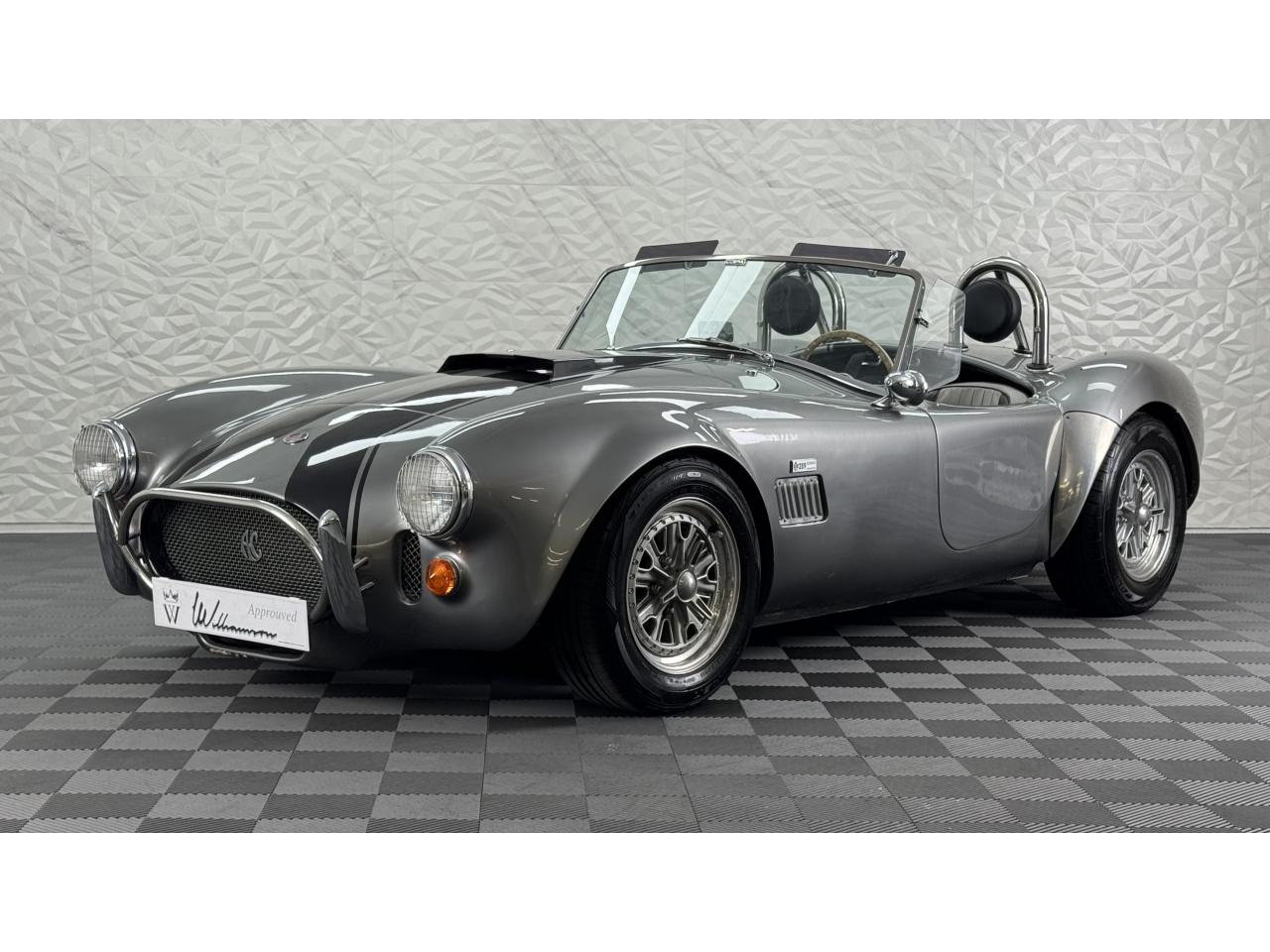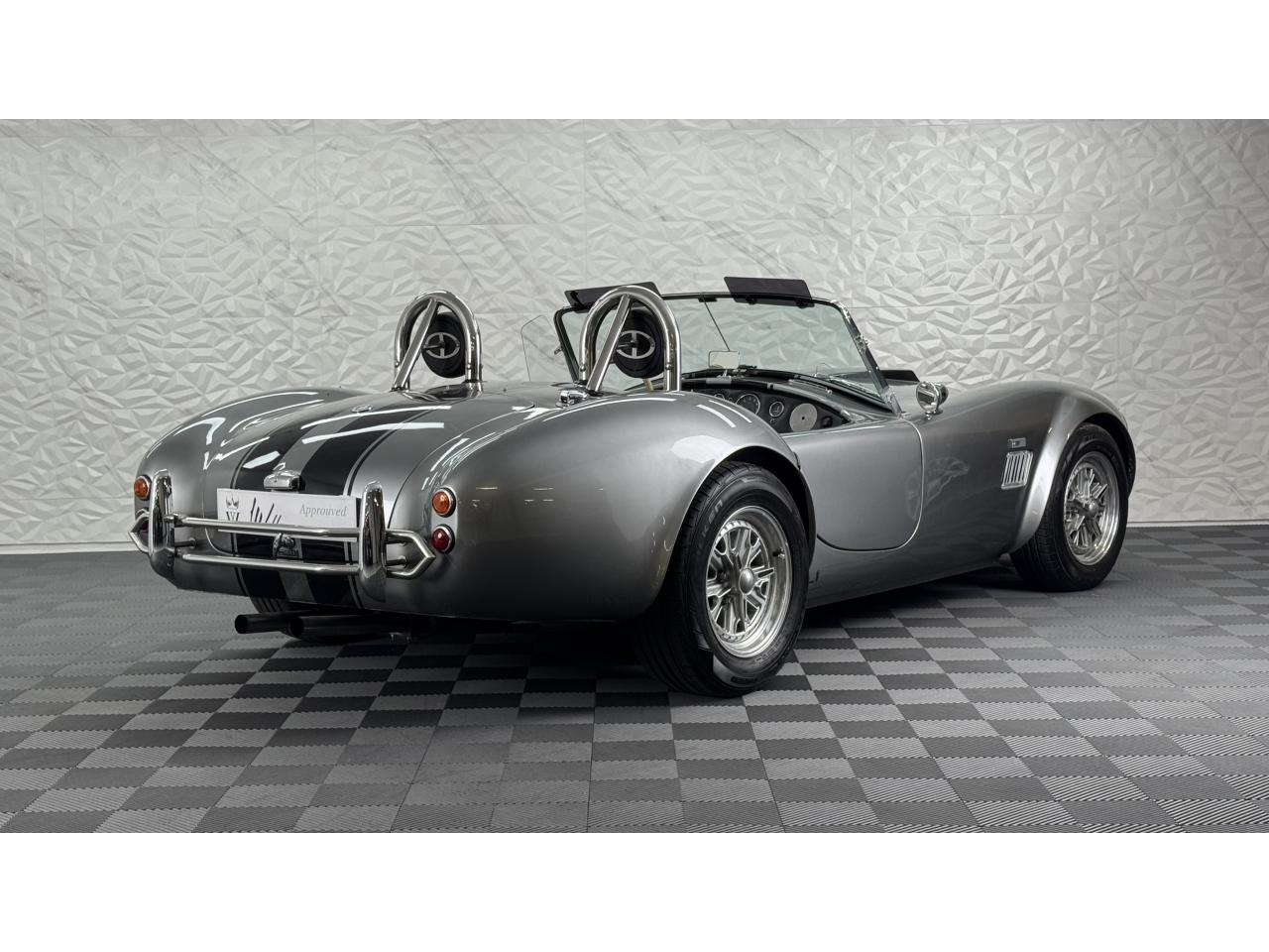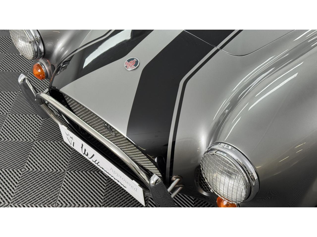 Il s'agit d'un kit Gardner Douglas « GD427 » construit en 1991. Il est basé sur un AC 289 MkIII et porte un badge sur les ailes avant qui l'indique subtilement. Le châssis (numéro 027) est une « colonne vertébrale triangulée » avec une carrosserie de construction semi-mono. La voiture/moteur donneur était un Rover SD1 de 1976 et ce GD427 est donc équipé d'un Rover V8 de 3,5 litres et d'une boîte de vitesses manuelle à 5 vitesses LT77. L'attention portée aux détails est fantastique, les cache-culbuteurs Rover standard ayant été remplacés par des éléments en relief « COBRA », un filtre à air pancake et un pot tourbillonnant chromés d'époque « Edelbrock ». Il comporte également des collecteurs en acier inoxydable. Il est correctement enregistré auprès de la ffve Gardner Douglas AC Cobra », ce qui n’est pas le cas de tous. Cela signifie qu’une plaque d’immatriculation d’époque liée à l’âge est existant