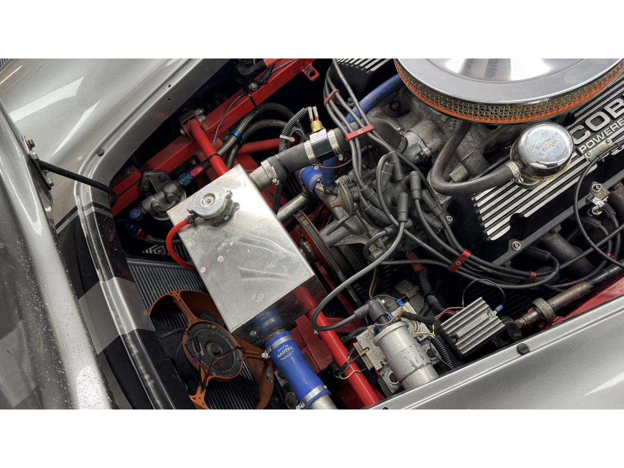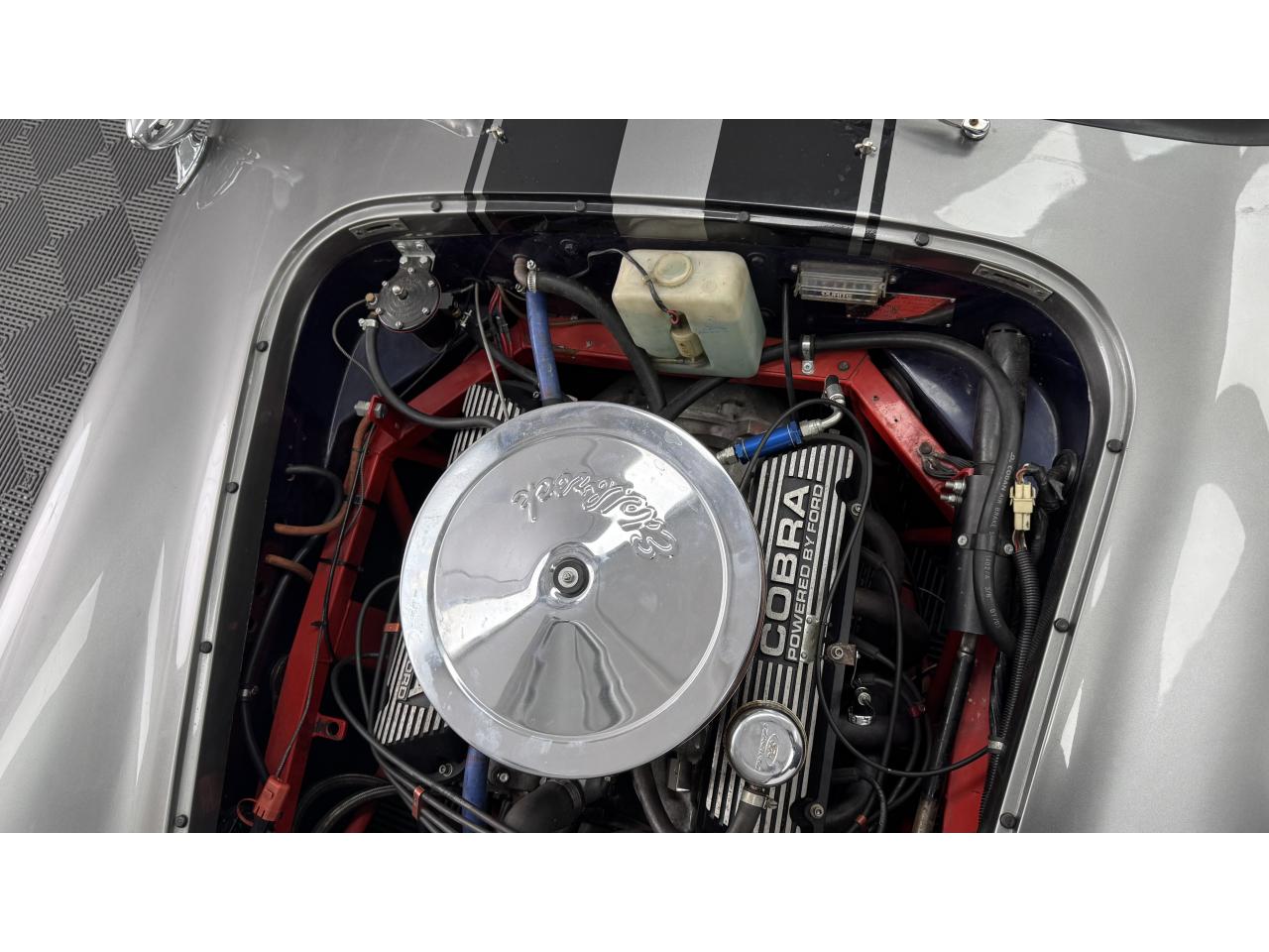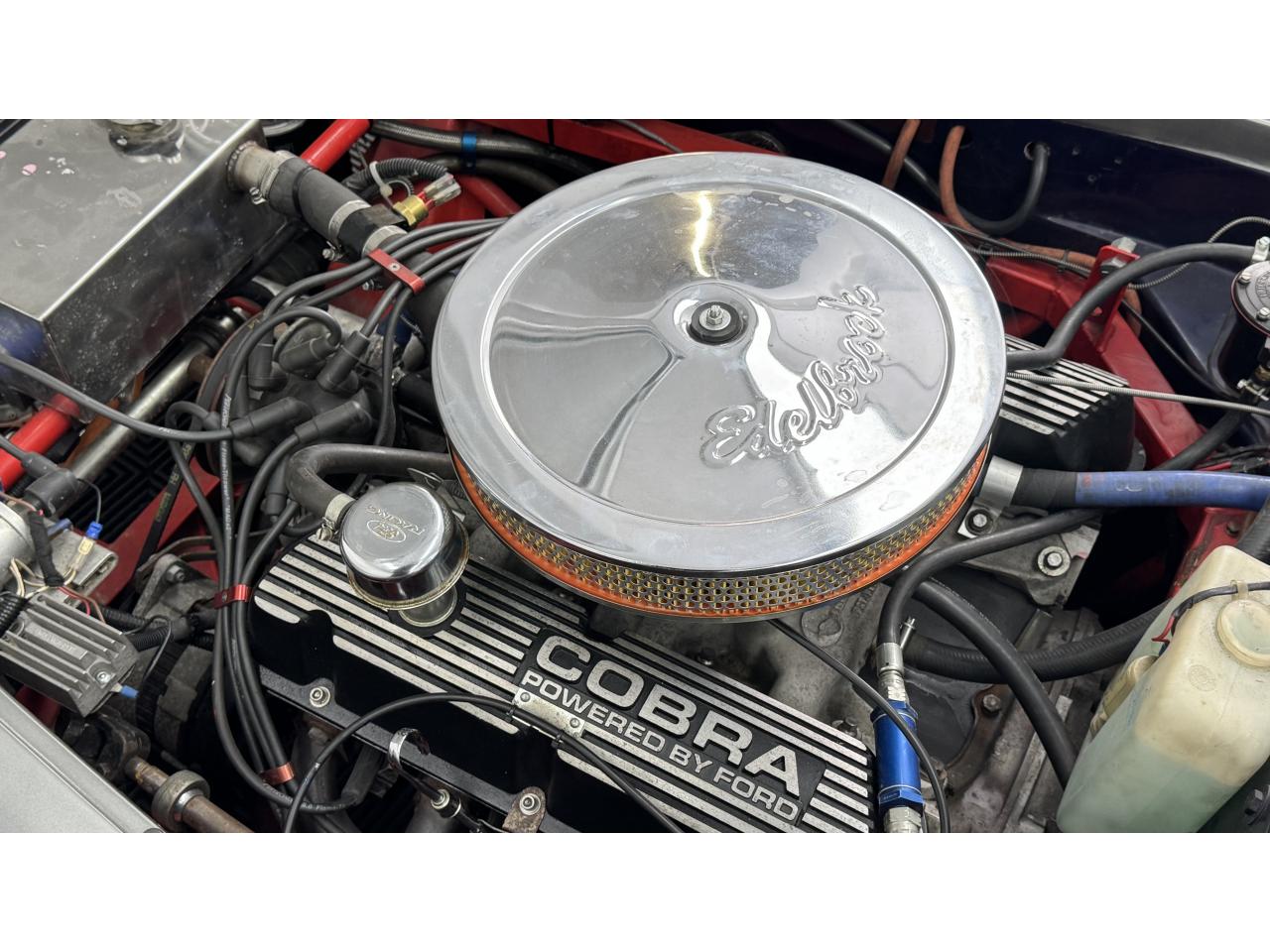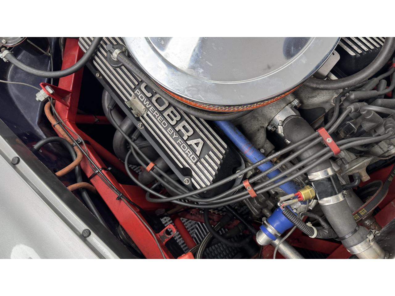 Il s'agit d'un kit Gardner Douglas « GD427 » construit en 1991. Il est basé sur un AC 289 MkIII et porte un badge sur les ailes avant qui l'indique subtilement. Le châssis (numéro 027) est une « colonne vertébrale triangulée » avec une carrosserie de construction semi-mono. La voiture/moteur donneur était un Rover SD1 de 1976 et ce GD427 est donc équipé d'un Rover V8 de 3,5 litres et d'une boîte de vitesses manuelle à 5 vitesses LT77. L'attention portée aux détails est fantastique, les cache-culbuteurs Rover standard ayant été remplacés par des éléments en relief « COBRA », un filtre à air pancake et un pot tourbillonnant chromés d'époque « Edelbrock ». Il comporte également des collecteurs en acier inoxydable. Il est correctement enregistré auprès de la ffve Gardner Douglas AC Cobra », ce qui n’est pas le cas de tous. Cela signifie qu’une plaque d’immatriculation d’époque liée à l’âge est existant