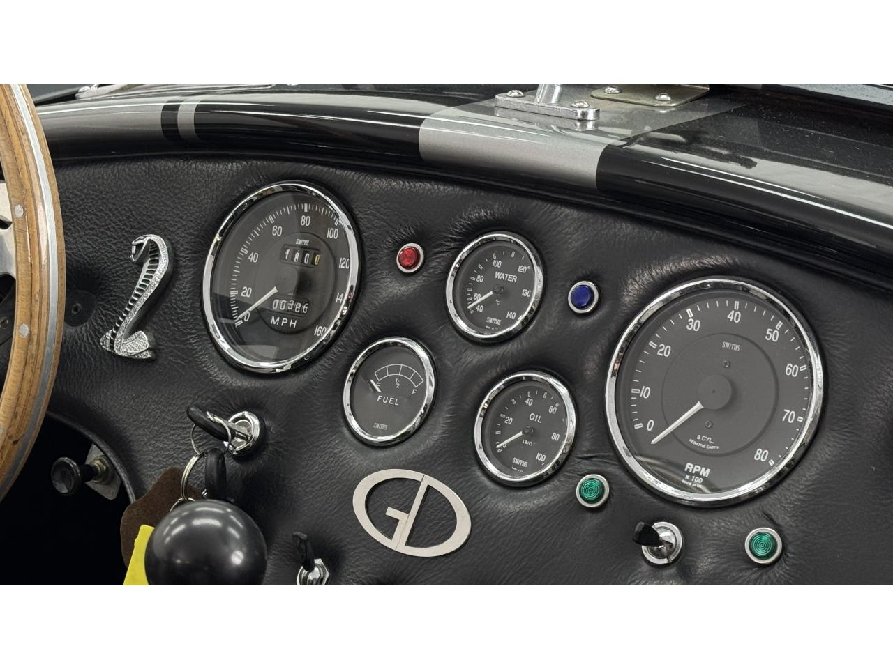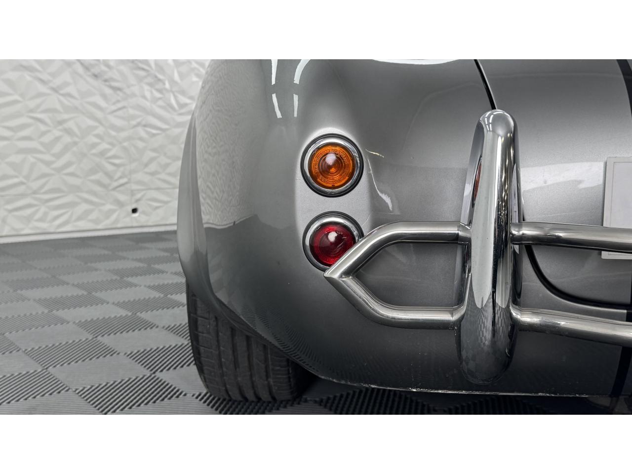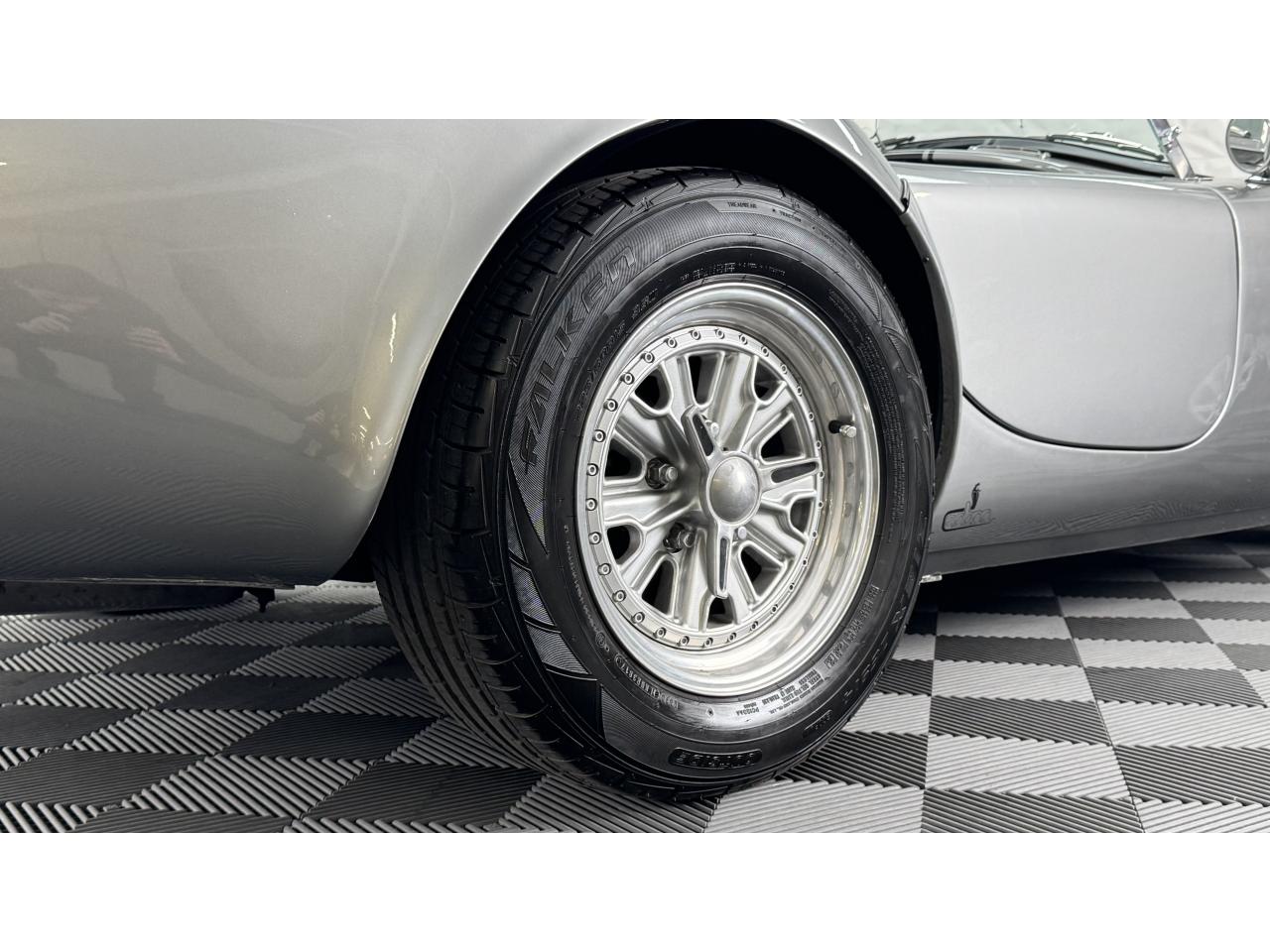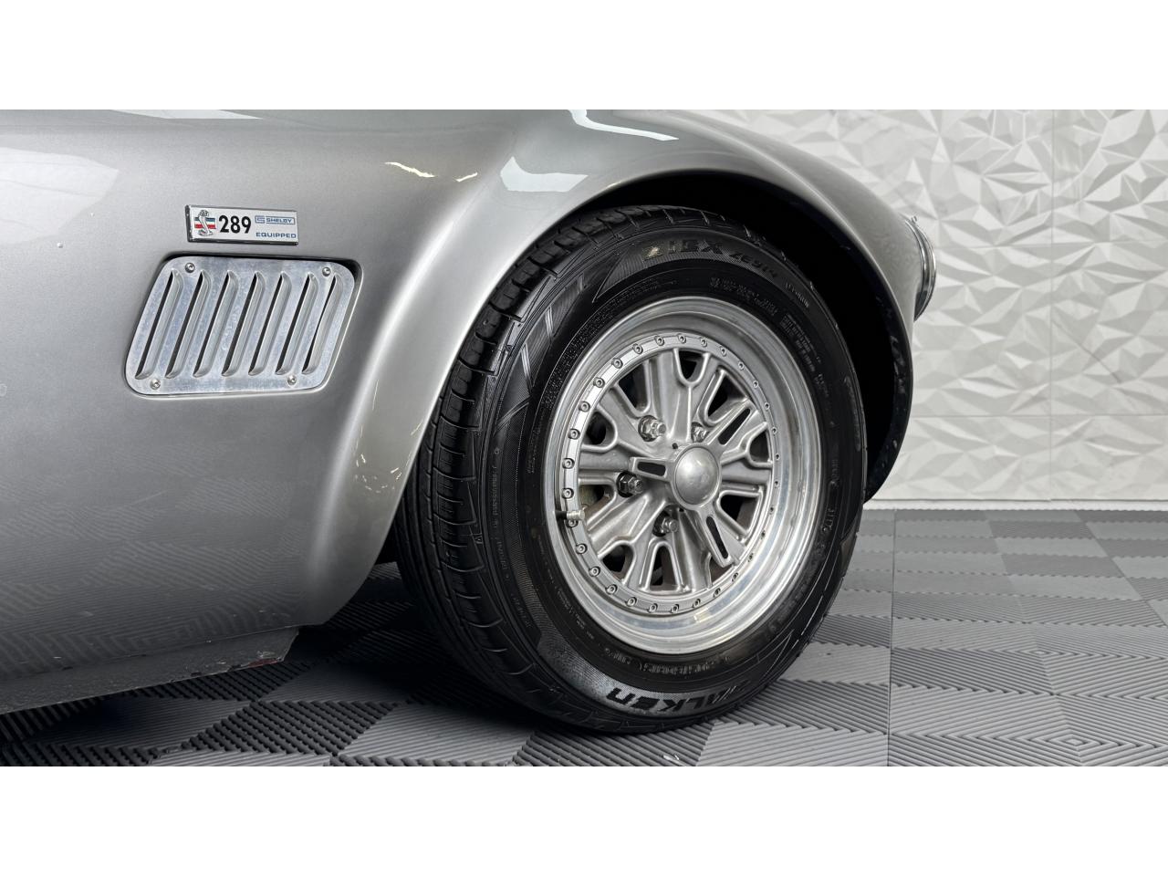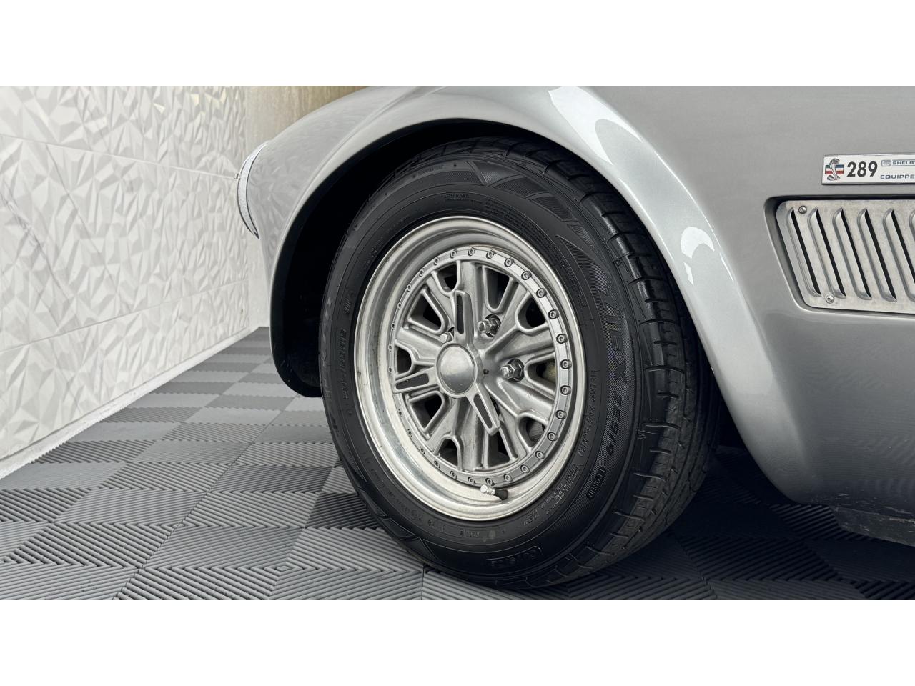 D'autres améliorations incluent les « vraies » roues Halibrand qui sont chaussées de pneus Falken Ziex presque neufs (205/60R15 à l'avant et 225/60/R15 à l'arrière), des butoirs et des protecteurs de phares chromés d'époque et un magnifique volant à jante en bois Moto-lita. Les sièges baquets d’époque sont également garnis de cuir pour correspondre aux couleurs extérieures. Bien qu'il y ait un lecteur CD Sony (avec changeur multiple 6 CD dans le coffre), celui-ci est dissimulé sous le tableau de bord côté passager – et conserve ainsi l'aspect authentique d'un cockpit Cobra original.