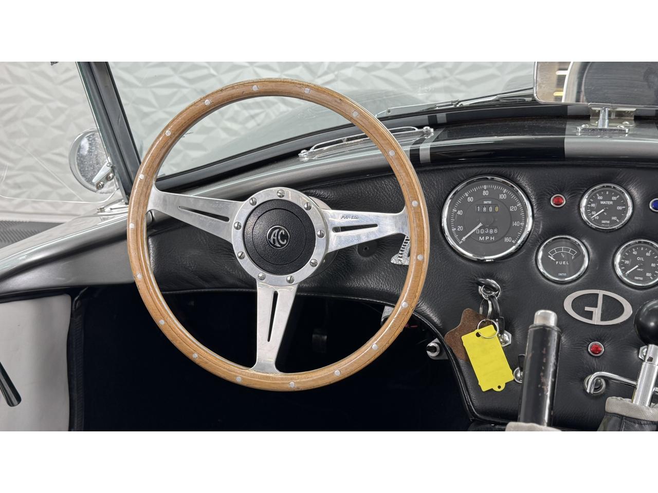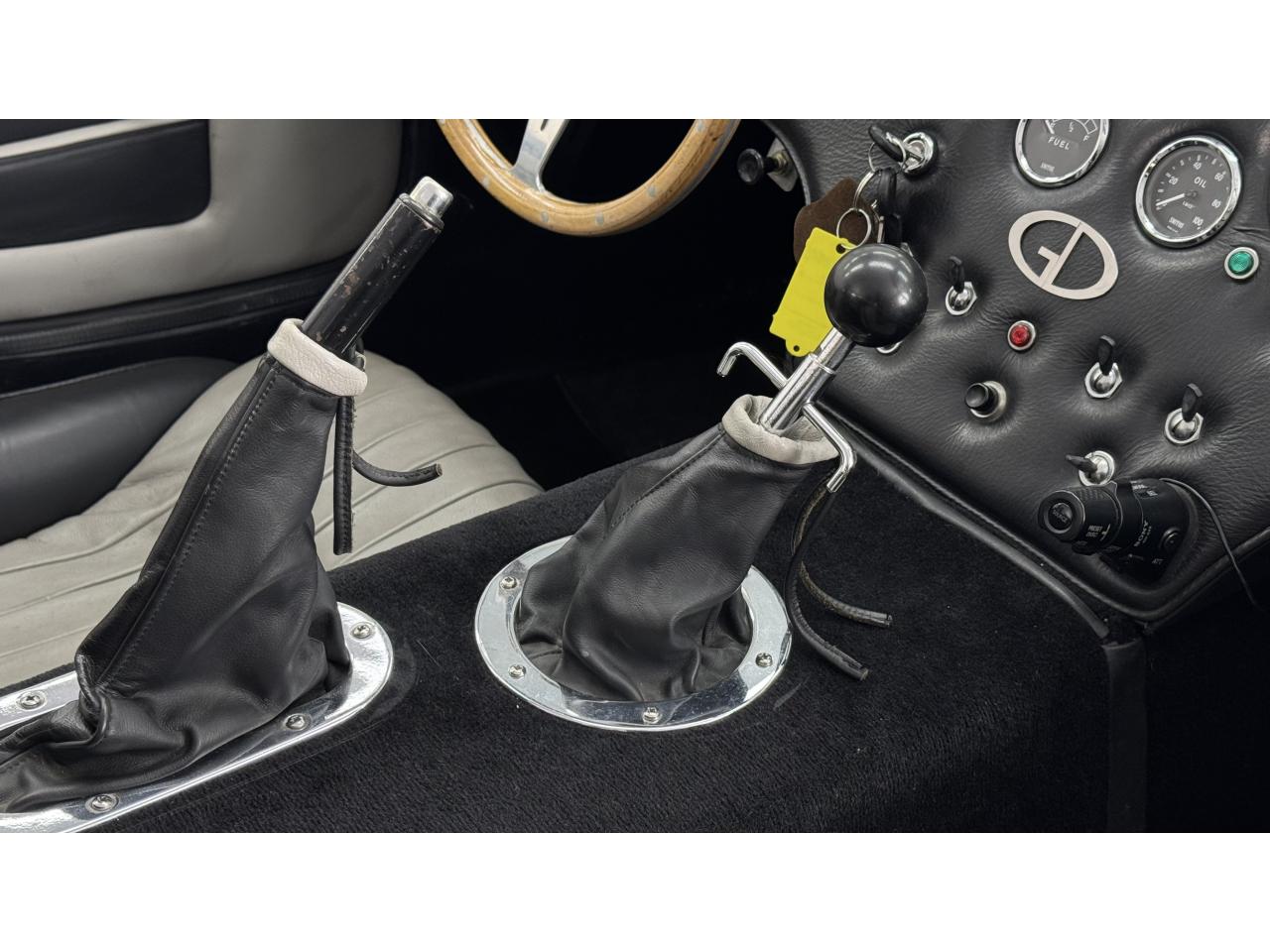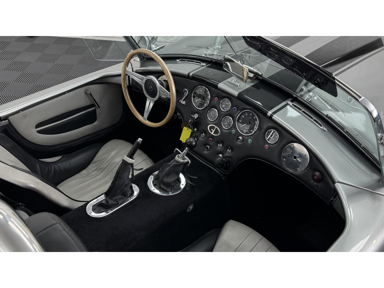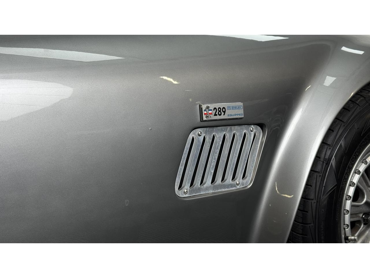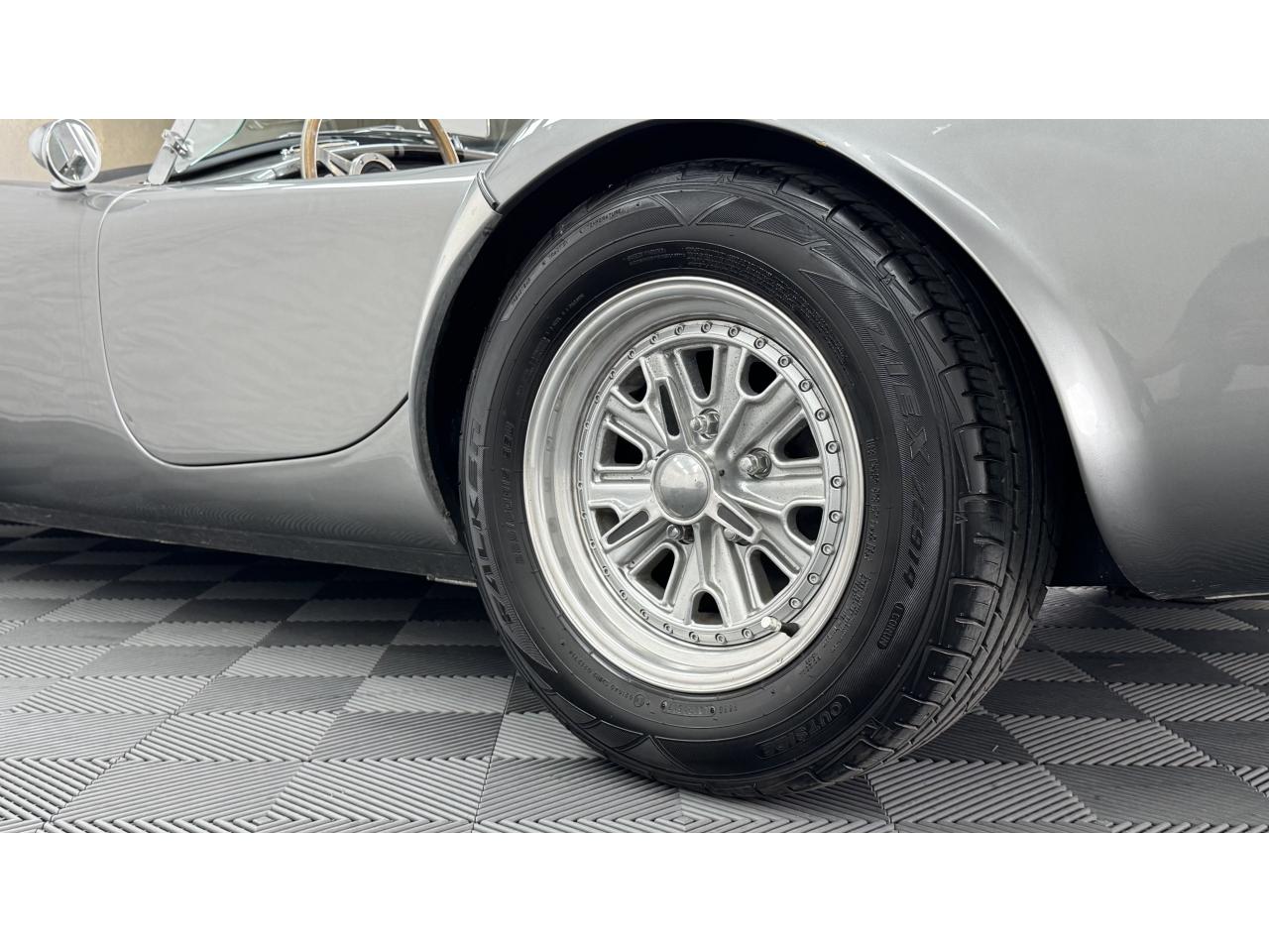 D'autres améliorations incluent les « vraies » roues Halibrand qui sont chaussées de pneus Falken Ziex presque neufs (205/60R15 à l'avant et 225/60/R15 à l'arrière), des butoirs et des protecteurs de phares chromés d'époque et un magnifique volant à jante en bois Moto-lita. Les sièges baquets d’époque sont également garnis de cuir pour correspondre aux couleurs extérieures. Bien qu'il y ait un lecteur CD Sony (avec changeur multiple 6 CD dans le coffre), celui-ci est dissimulé sous le tableau de bord côté passager – et conserve ainsi l'aspect authentique d'un cockpit Cobra original.