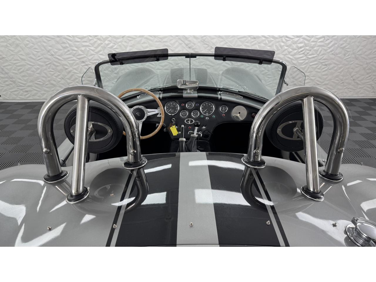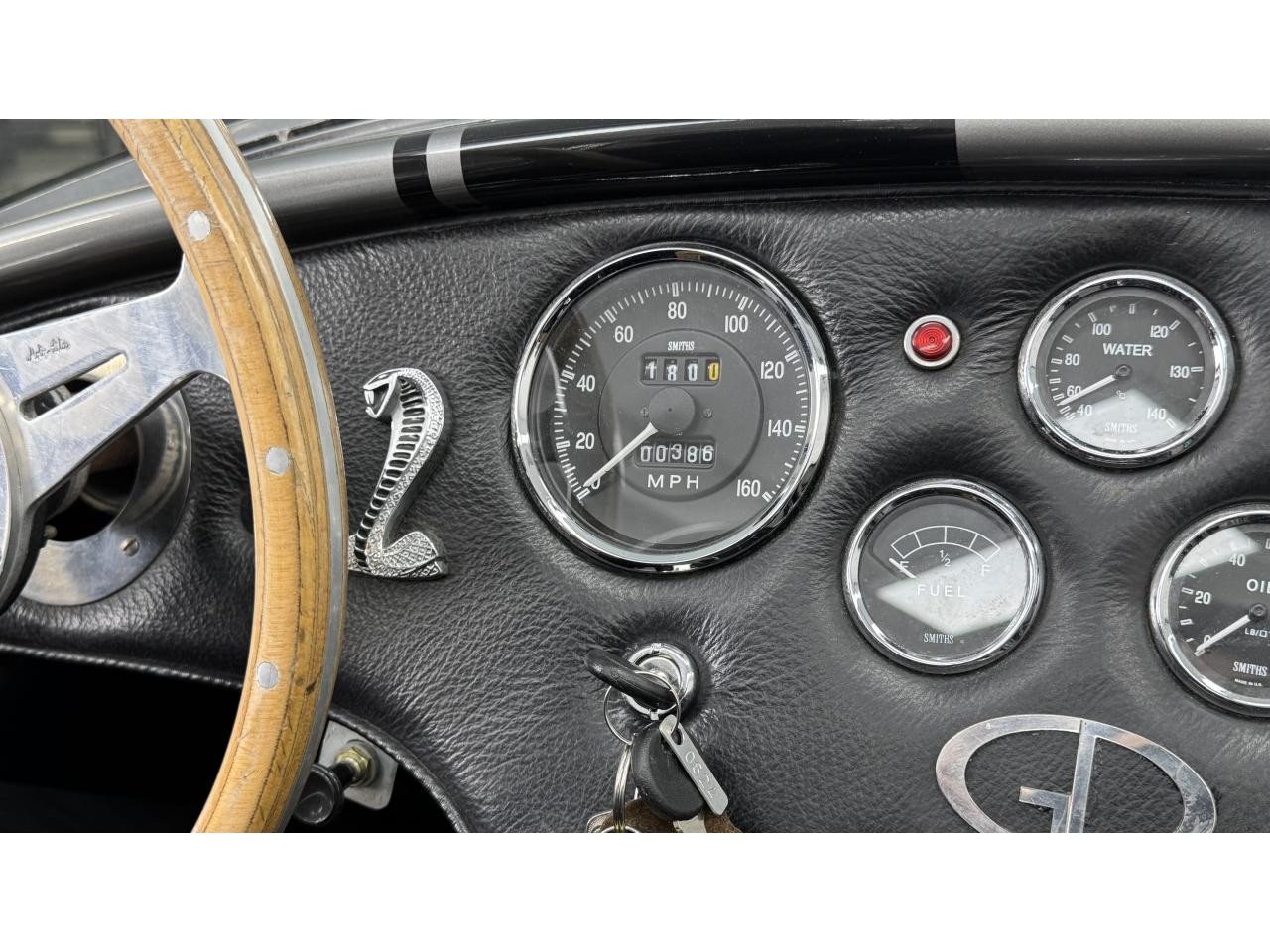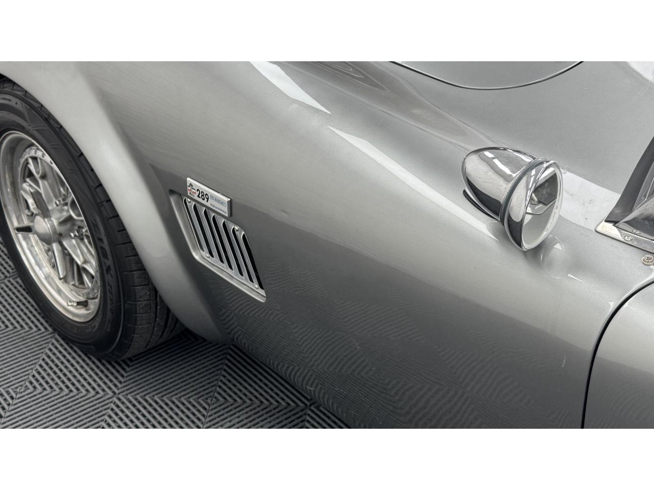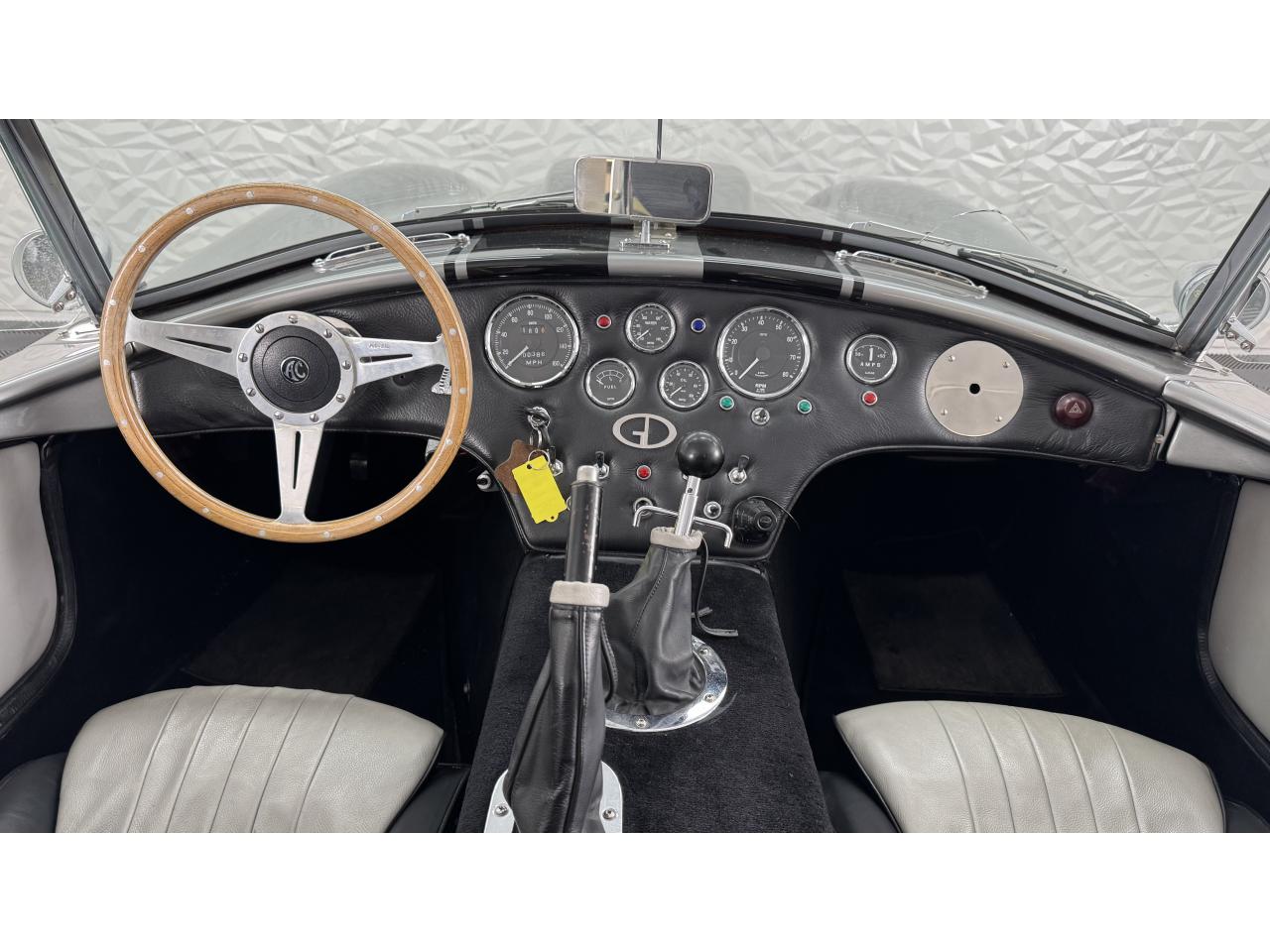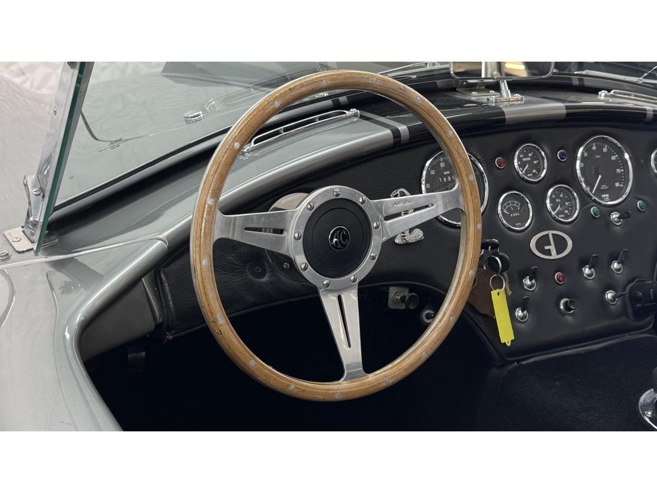 D'autres améliorations incluent les « vraies » roues Halibrand qui sont chaussées de pneus Falken Ziex presque neufs (205/60R15 à l'avant et 225/60/R15 à l'arrière), des butoirs et des protecteurs de phares chromés d'époque et un magnifique volant à jante en bois Moto-lita. Les sièges baquets d’époque sont également garnis de cuir pour correspondre aux couleurs extérieures. Bien qu'il y ait un lecteur CD Sony (avec changeur multiple 6 CD dans le coffre), celui-ci est dissimulé sous le tableau de bord côté passager – et conserve ainsi l'aspect authentique d'un cockpit Cobra original.