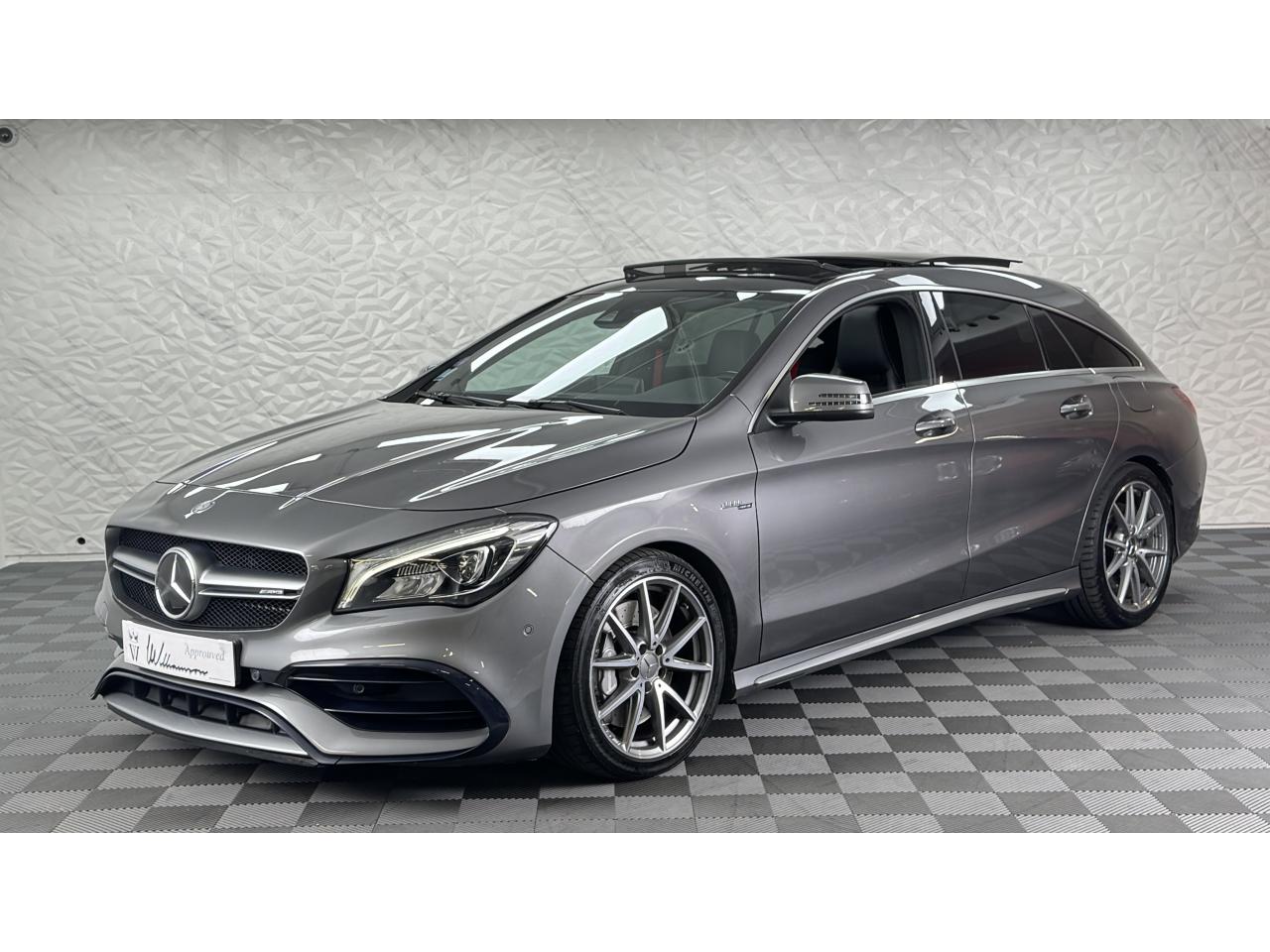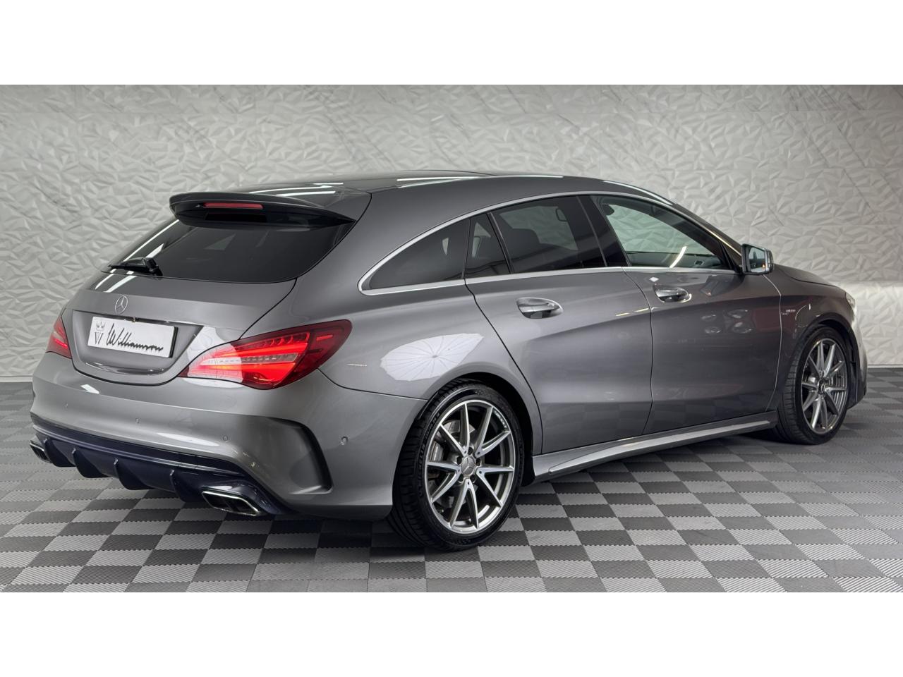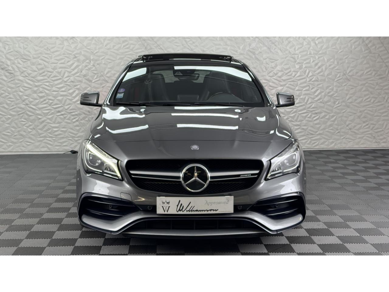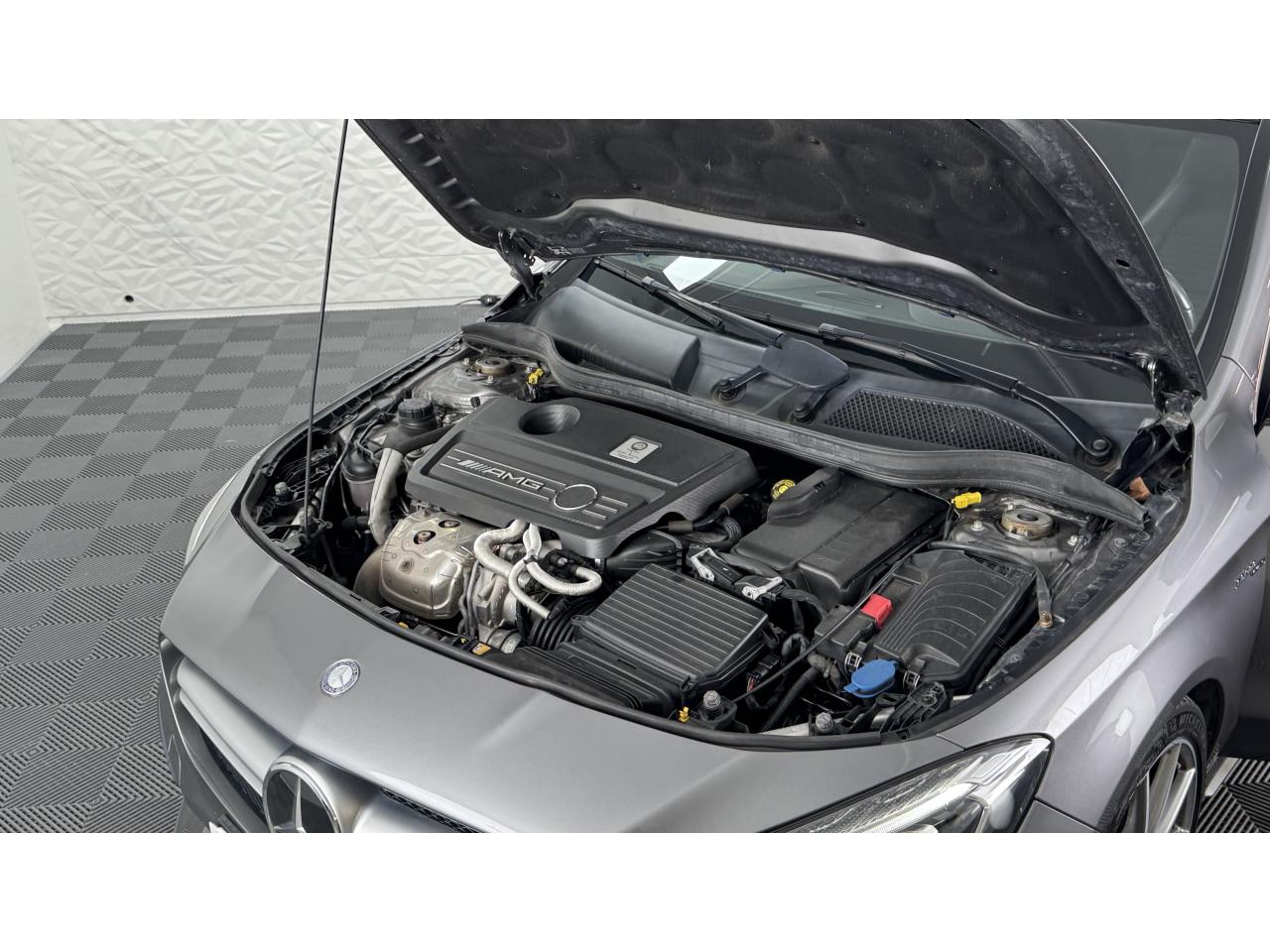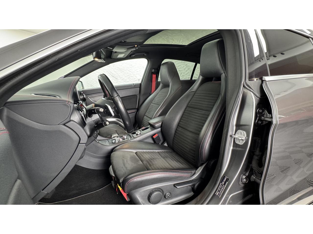 Williamson Automobiles vous propose à la vente cette superbe Mercedes CLA 45 AMG 4MATIC de 2016 dans sa magnifique configuration Gris Sélénite métallisé, sublimée par ses détails rouges et ses ceintures de sécurité rouges à l’intérieur.