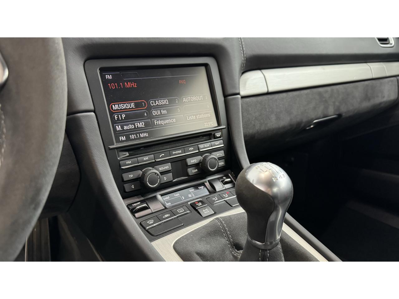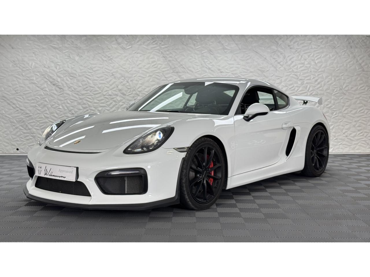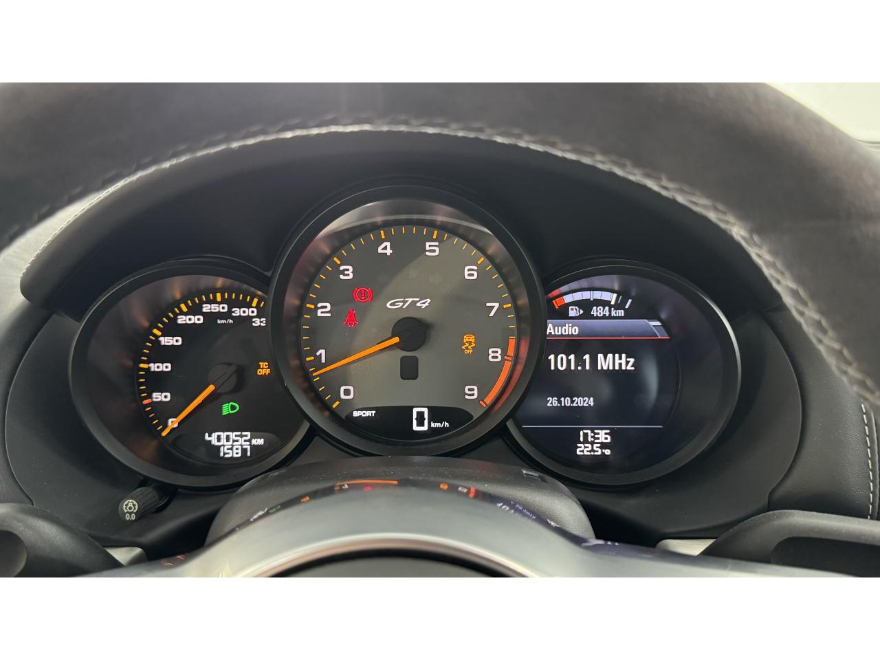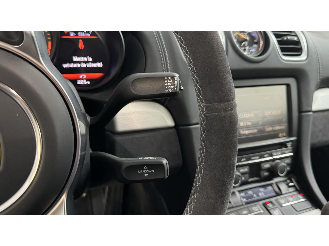 3 instruments ronds intégrés dans le cockpitAffichage analogique : régime, vitesse et jauge de carburantAffichage numérique permanent : kilométrage parcouru, kilométrage quotidien, heure, température extérieure et vitesseAirbags grand volume (deux niveaux de gonflage) pour le conducteur et le passagerAssistant d’éclairage automatique avec éclairage d’accompagnementBoîte à gants verrouillableBoîte manuelle 6 rapports avec volant bi-masse, embrayage à rattrapage automatique d’usureCeintures de sécurité automatiques à 3 points à l'avant, boucles de ceinture sur les siègesCoupé 2 placesDirection assistée électromécanique à démultiplication variableDispositif de contrôle de l'usure des freins sur chaque plaquetteEntrées d'air dans l'habillage des parties latérales arrière avec sideblades et inscription « GT4 » estampéeÉtriers fixes monobloc rouges en aluminium à 6 pistons à l'avant et 4 pistons à l'arrière, disques de freins, ventilés et ajourés avec moyeux en aluminium, diamètre 380 mm à l'avant et à l'arrièreFrein de parking électriqueLève-vitre électrique avec fonction à impulsion haut/bas et abaissement automatique de la vitrePhares Bi-Xénon avec clignotants intégrésSignature « PORSCHE » et inscription « GT4 » en Noir sur bouclier arrièreSystème antidémarrage avec verrouillage centralisé et télécommande, système d’alarmeSystème de contrôle de la pression des pneus (TPM) avec mode CircuitTableau de bord avec compte-tours central, écran TFT couleur haute définition de 4,6 pouces avec affichage des fonctions de l'ordinateur de bord, éclairé en blancTeinte extérieure BlancTouche SPORT avec double débrayageVide-poches dans les portières et à côté du cache-moteurVolant sport GT4 avec couronne de volant en Alcantara module d’airbag en cuir, diamètre du volant de 360 mm, réglable manuellement en hauteur et profondeur